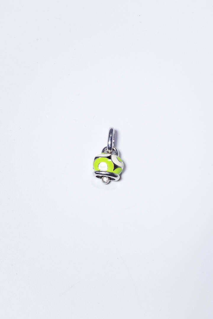 Ciondolo in oro bianco, firmato "Chantecler", in smalti policromi e un diamante taglio brillante di ct 0,03 ca.