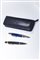 Lotto di due penne a sfera "Montblanc", modello "Boheme"; una con corpo in resina nera e finiture color oro giallo e piccola gemma verde a decoro. L'altra con corpo blu con striature; finiture color platino.