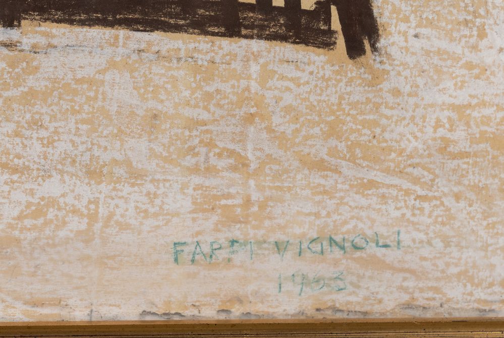 FARPI VIGNOLI (Bologna 1907 – 1997) "Bologna sotto la neve", 1963. Tecnica mista su carta. Cm 153x283. Opera firmata e datata in basso a destra Farpi Vignoli 1963. Provenienza: importante collezione privata Bologna. Opera acquistata direttamente dall'artista dall'attuale proprietà.