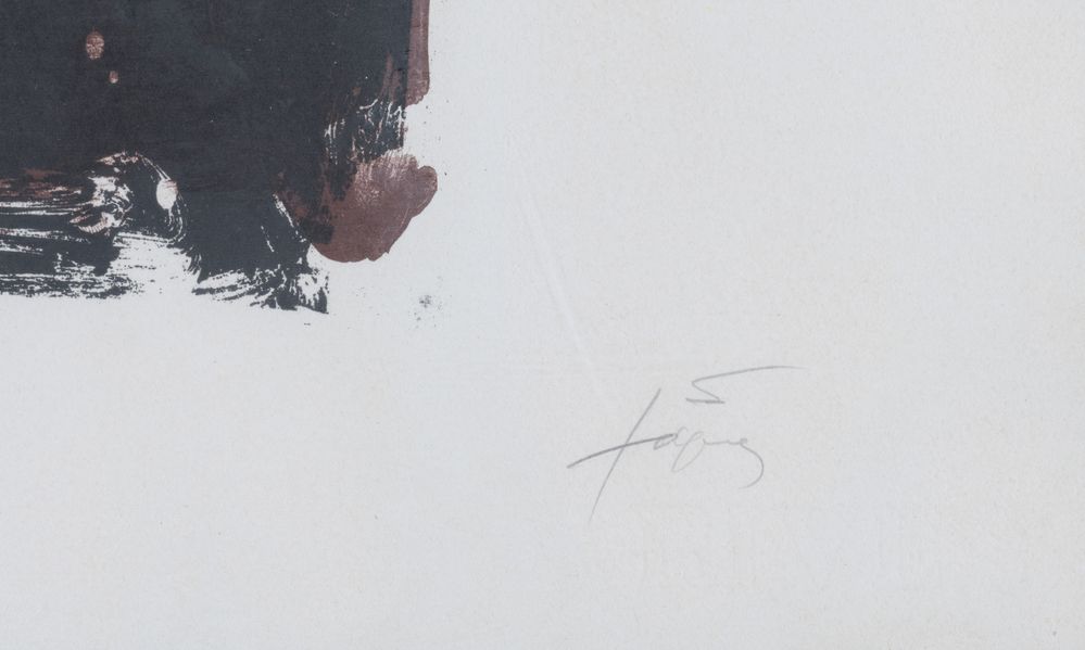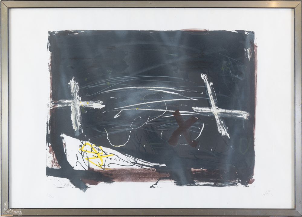 ANTONI TAPIES (Barcellona 1923 - 2012) "La pràctica de l'art", 1973. Litografia a colori su carta. Cm 63x90. Opera firmata in basso a destra Tapies. Reca numeri di tiratura in basso a sinistra 72/150.