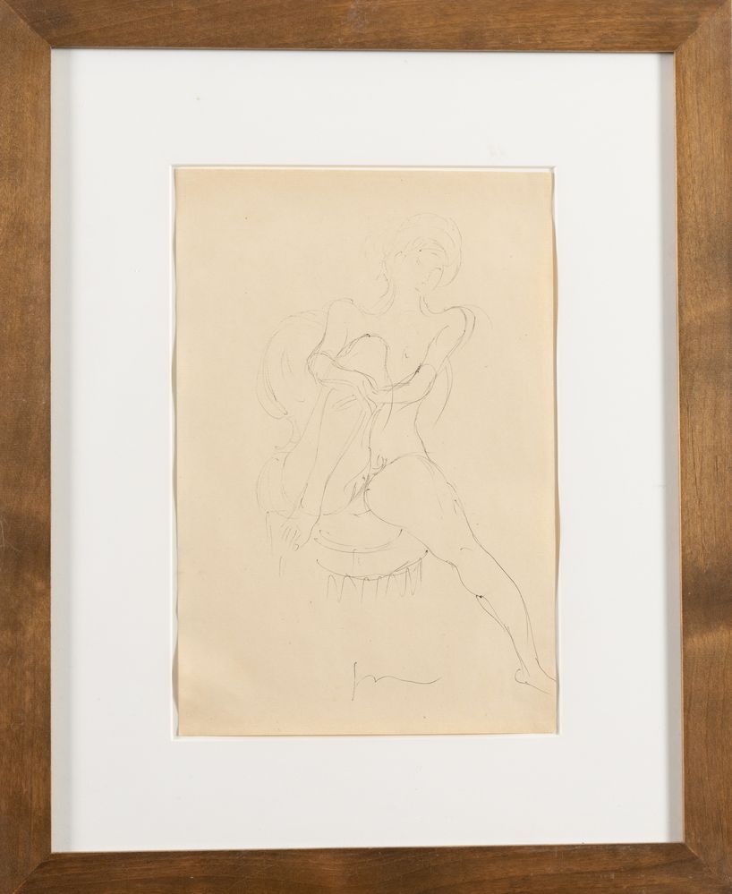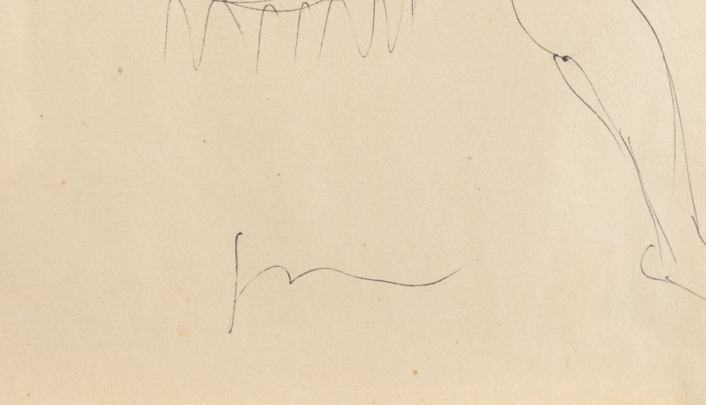 LUCIO FONTANA (Rosario 1899 - Comabbio 1967) "Figura", 1957. Disegno a biro nero su carta vergata. Cm 33x22. Opera firmata in basso al centro Fontana.