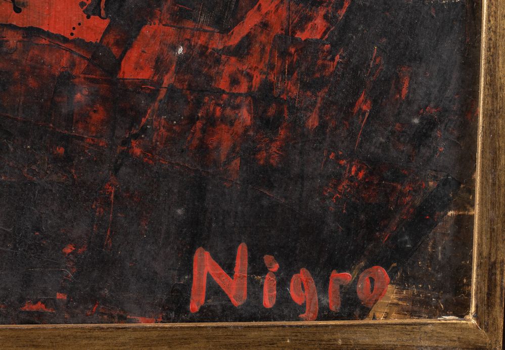 MARIO NIGRO (Pistoia 1917 - Livorno 1992) "Senza titolo", anni '50. Olio su carta applicata su tela. Cm 99,5x70. Opera firmata in basso a destra Nigro. Opera accompagnata da certificato di autenticità con foto dell'archivio artistico Mario Nigro registrata al n. SDOSC1.