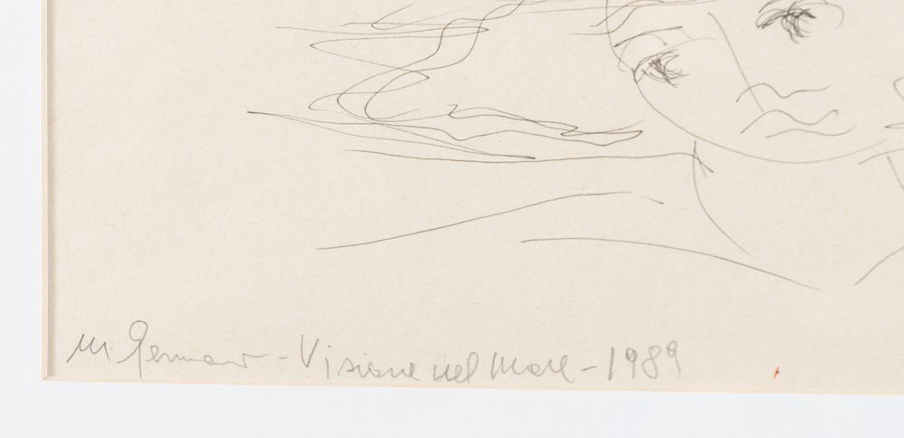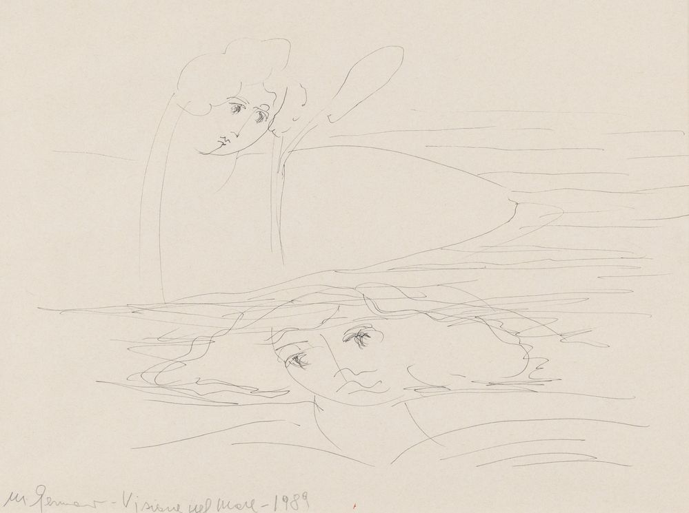 MIMMO GERMANA' (Catania 1944 - Busto Arsizio 1992) "Visione nel mare", 1989. China su carta. Cm 24x32. Opera firmata, intitolata e datata in basso a sinistra M. Germanà visione nel mare 1989. Opera accompagnata da autentica dell'archivio generale dell'opera di Mimmo Germanà con numero d'archivio LESACS/DC. Opera pubblicata in Mimmo Germanà Sogni Di-Segni a pag. 104.