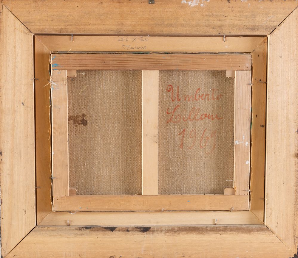 UMBERTO LILLONI (Milano 1898 - 1980) "Senza titolo", 1969. Olio su tela. Cm 40x50. Opera firmata in basso a destra Lilloni. Al retro opera firmata e datata Umberto Lilloni 1969.