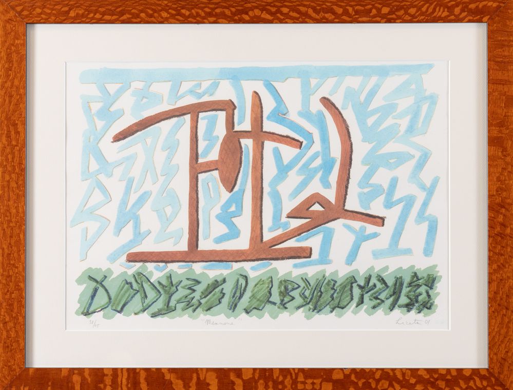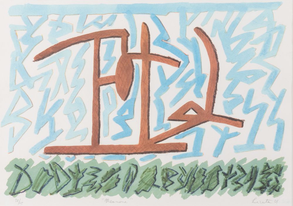 RICCARDO LICATA (Torino - Venezia 2014) "Mennone", 2001. Litografia a colori su carta. Cm 35x50. Opera firmata e datata in basso a destra Licata 01. Opera intitolata in basso al centro "Mennone". Reca numeri di tiratura in basso a sinistra 58/75.