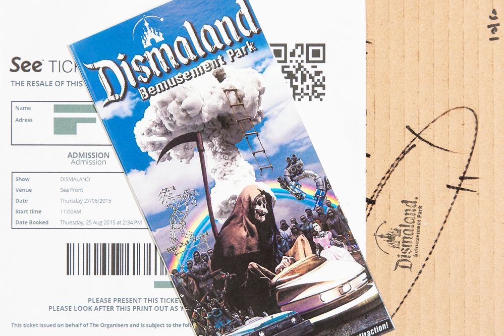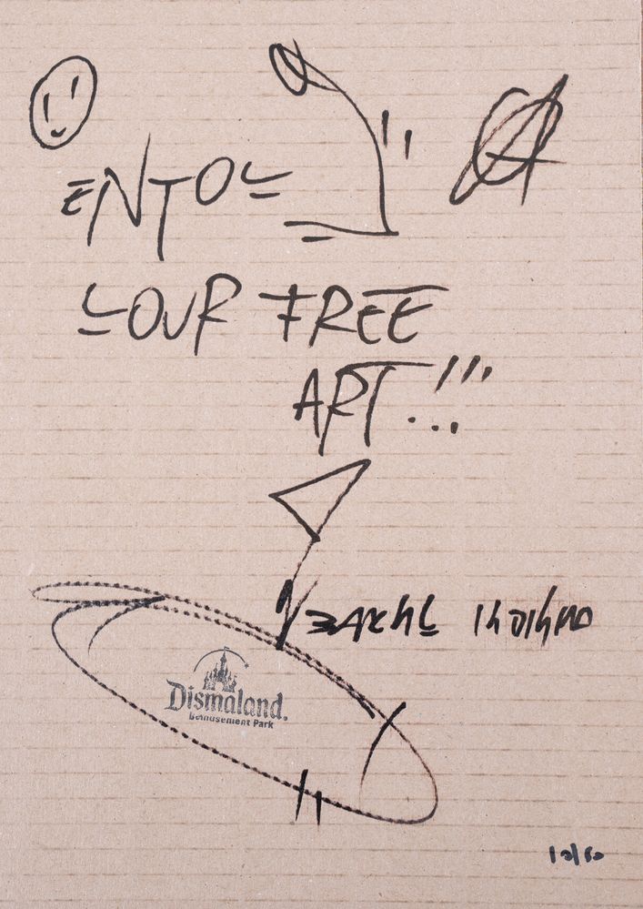 BANKSY (Bristol 1974) "Wrong War", 2015. Spray su cartone. Cm 30x21. Reca firma stampata in basso a destra Banksy. Al retro reca numeri di tiratura 10/50. Al retro reca timbro Dismaland. Opera accompagnata da ticket d'ingresso Dismaland.