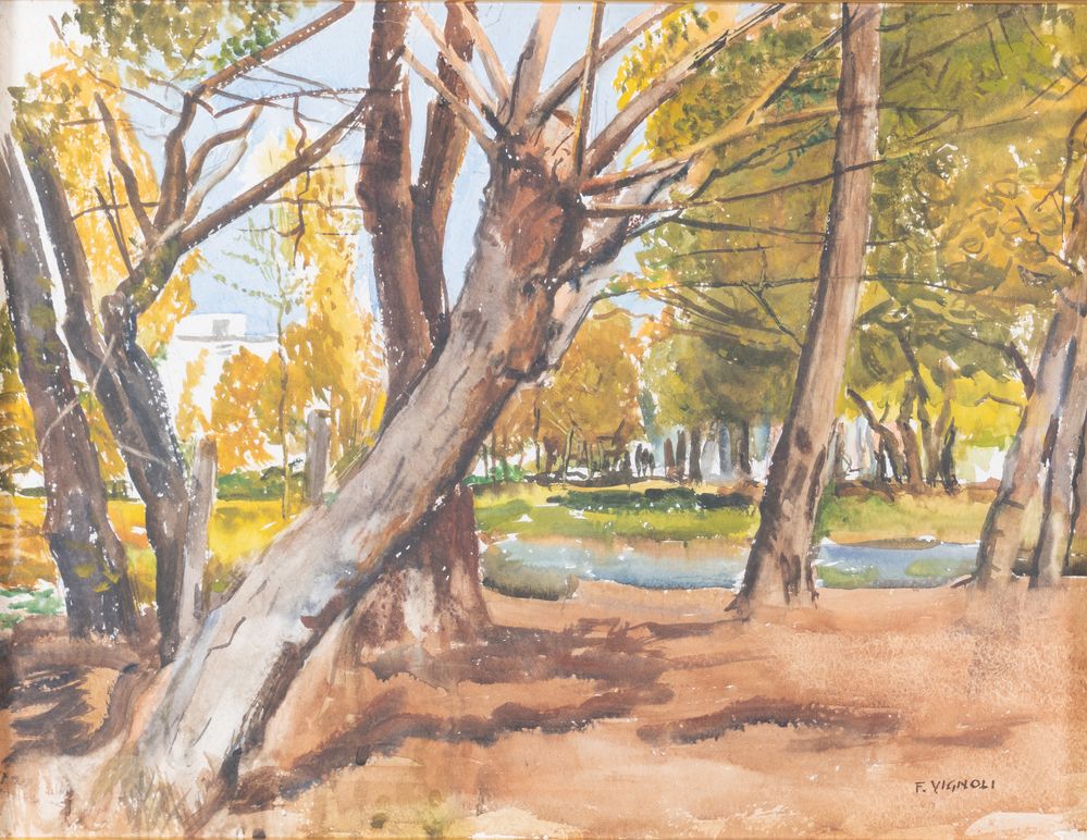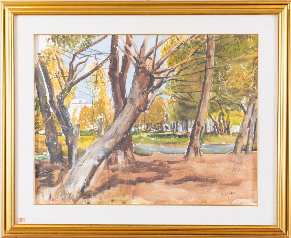 FARPI VIGNOLI (Bologna 1907 – 1997) "Bosco". Acquerello su carta. Cm 50x66,5. Opera firmata in basso a destra F. Vignoli.