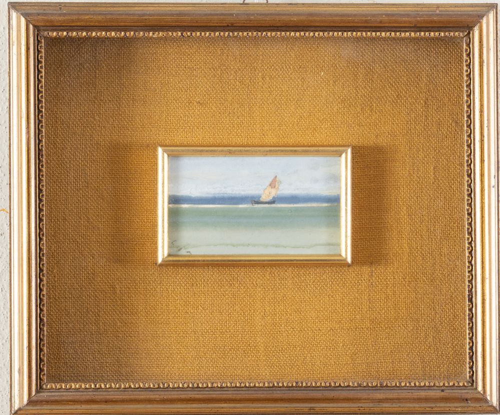 GUGLIELMO PIZZIRANI (Bologna, 1886 – 1971) "Marina". Olio su cartone. Cm 7x12. Opera firmata in basso a sinistra G. P.