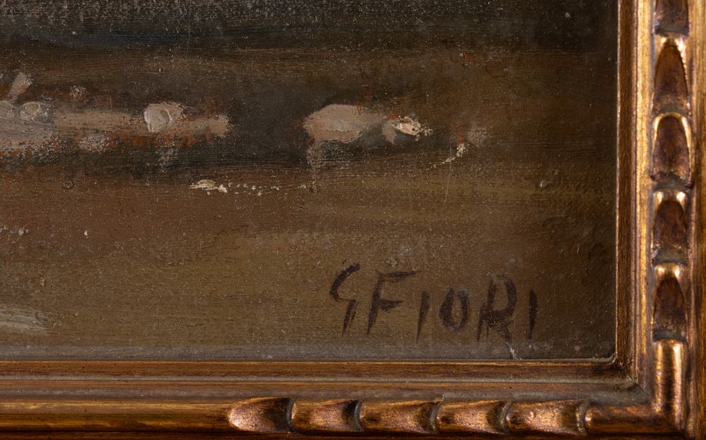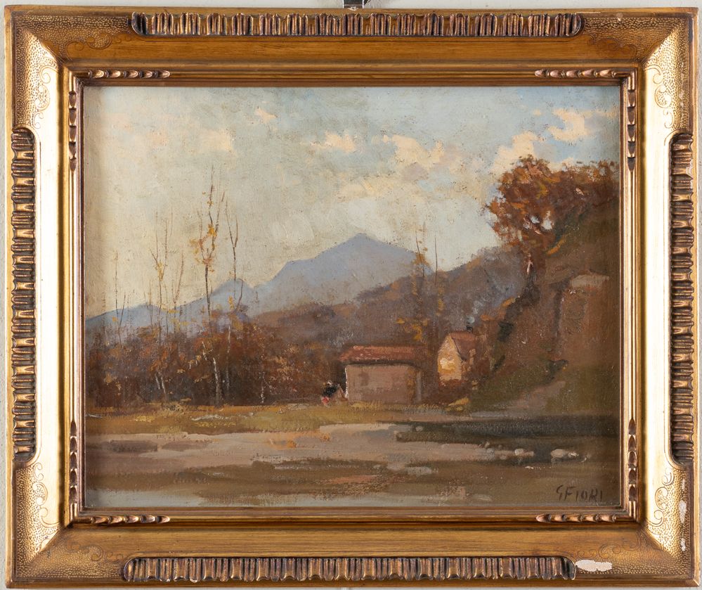 GIULIO FIORI (Bologna 1909 - 1991) "Paesaggio". Olio su tela. Cm 38x48. Opera firmata in basso a destra G. Fiori.