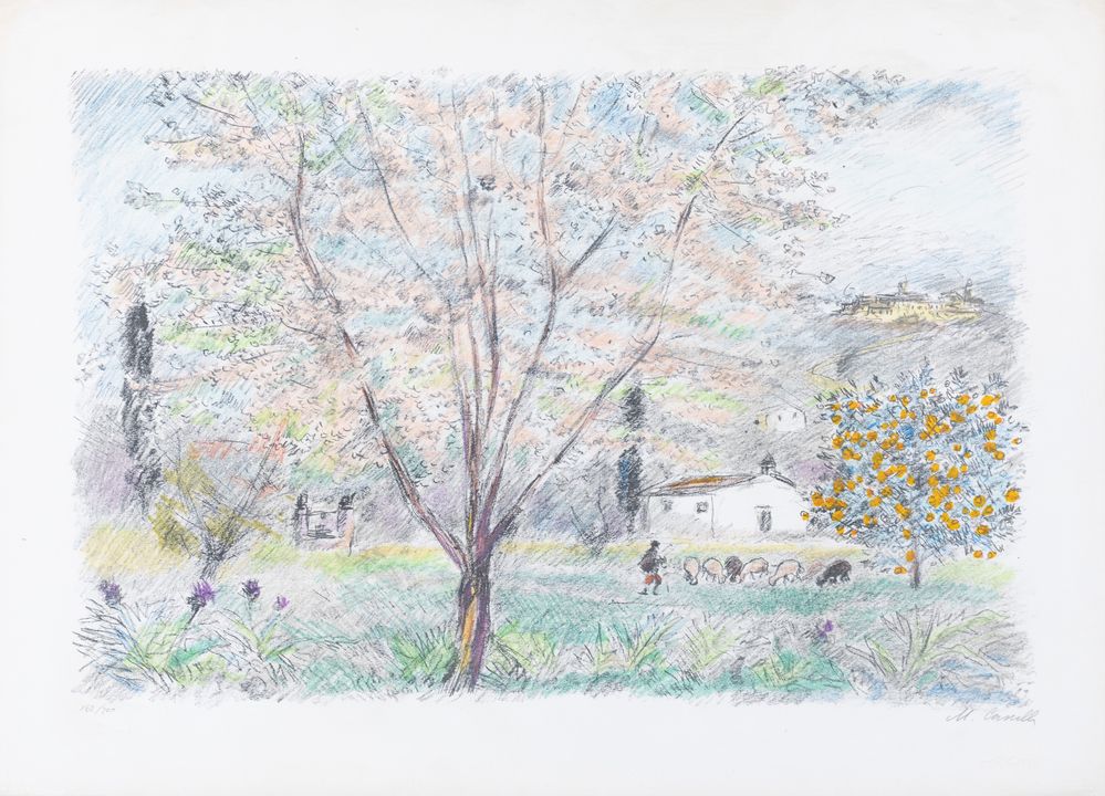 MICHELE CASCELLA (Ortona 1892 – Milano 1989) Litografia a colori su carta. Cm 50x70. Opera firmata in basso a destra M. Cascella. Reca numeri di tiratura in basso a sinistra 162/200