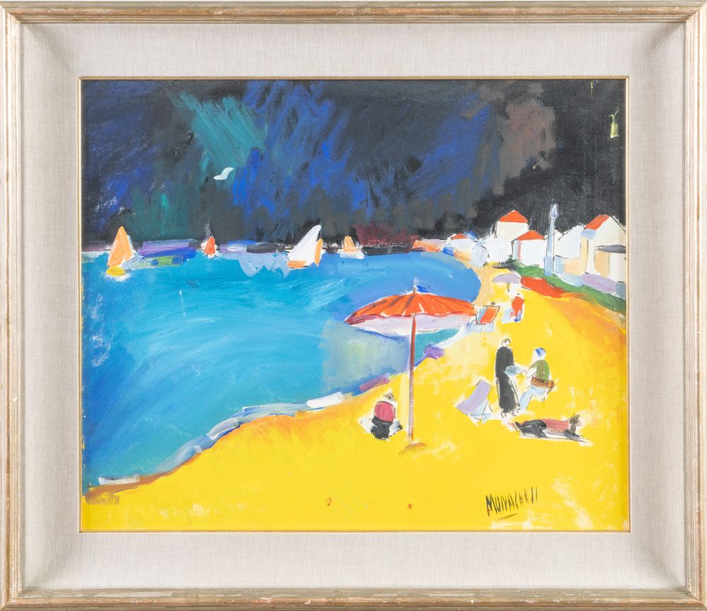 SANTE MONACHESI (Macerata 1910 - Roma 1991) "Spiaggia". Olio su tela. Cm 50x60. Opera firmata in basso a destra Monachesi.