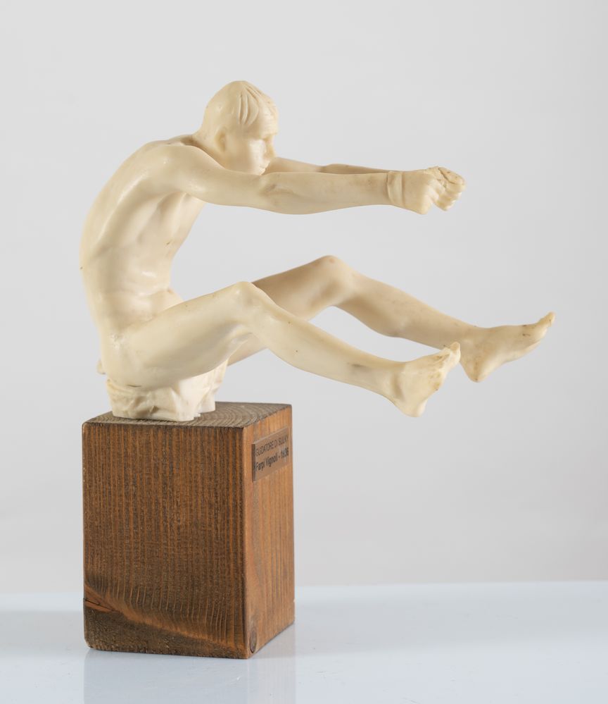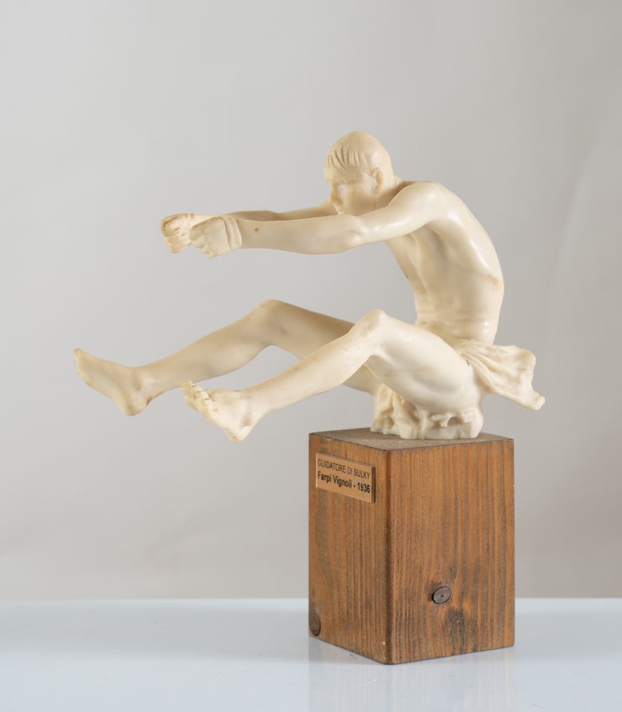 FARPI VIGNOLI (Bologna 1907 – 1997) "Guidatore di Sulky". Scultura in resina. Cm 13,5x15x17. Reca etichetta con Guidatore di Sulky, Farpi Vignoli - 1936.