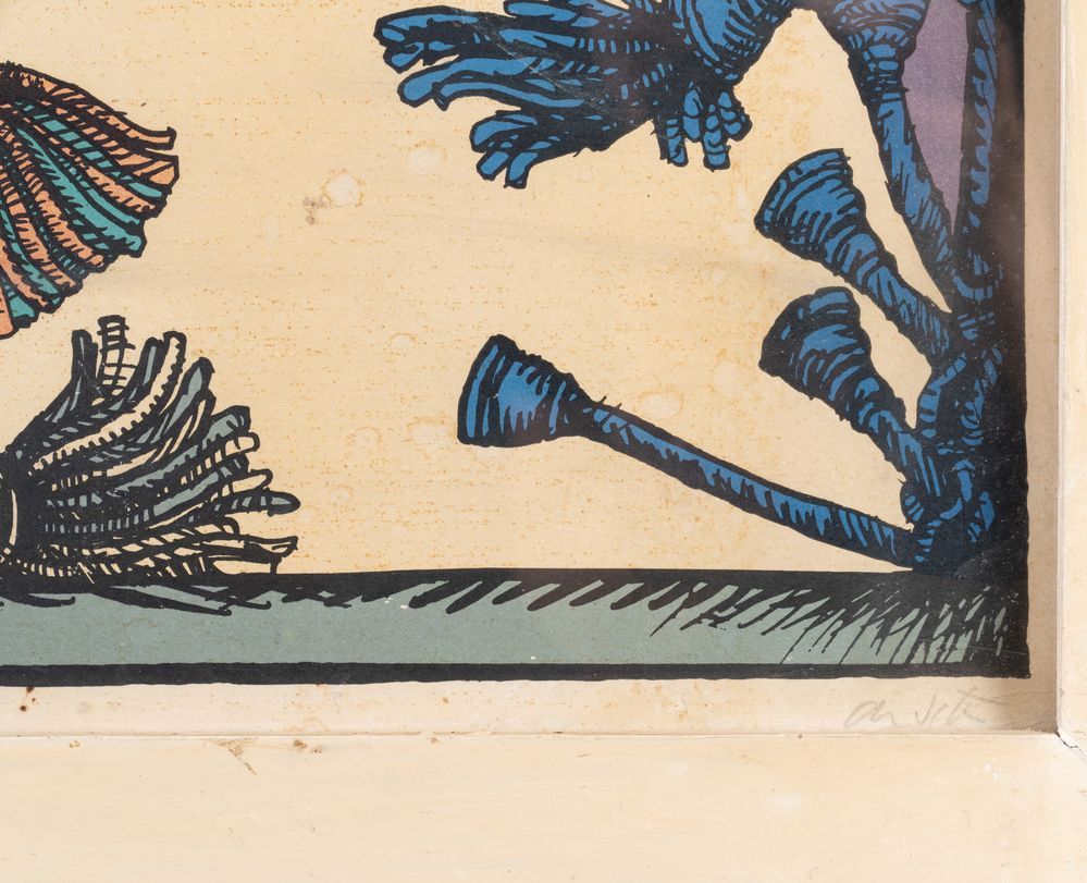 LUCIANO DE VITA (Ancona 1929 - Bologna 1992) "Senza titolo". Litografia a colori su carta. Cm 70x90, Opera firmata in basso a destra De Vita. Reca numeri di tiratura in basso a sinistra 97/100.