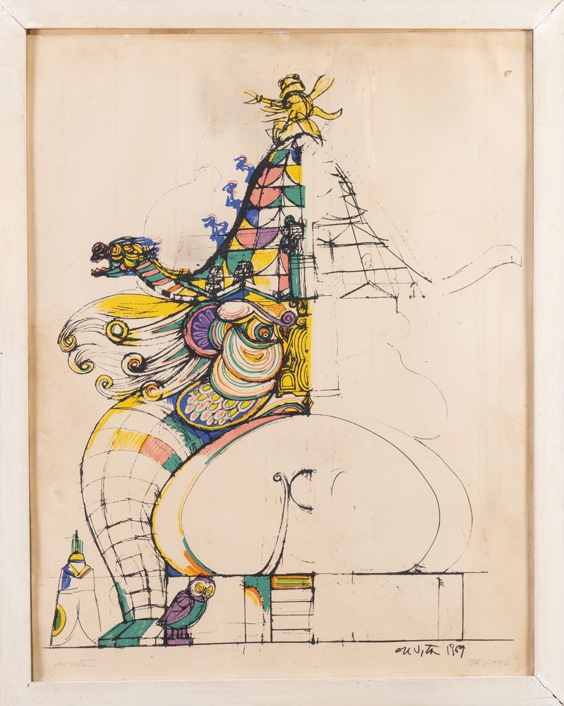LUCIANO DE VITA (Ancona 1929 - Bologna 1992) "Senza titolo", 1969. Litografia a colori su carta. Cm 90x70, Opera firmata in basso a sinistra De Vita. Reca numeri di tiratura in basso a destra 97/100.