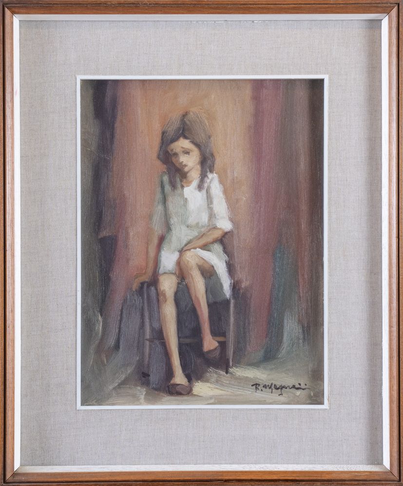 RENZO MAGNANINI (Gonzaga 1920 – Bentivoglio 2006) "Ritratto di fanciulla". Olio su tela. Cm 40x30. Opera firmata in basso a destra R. Magnanini.