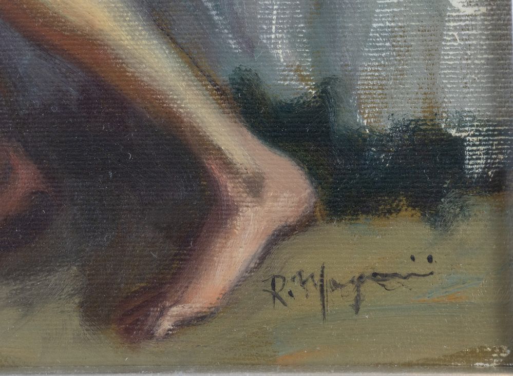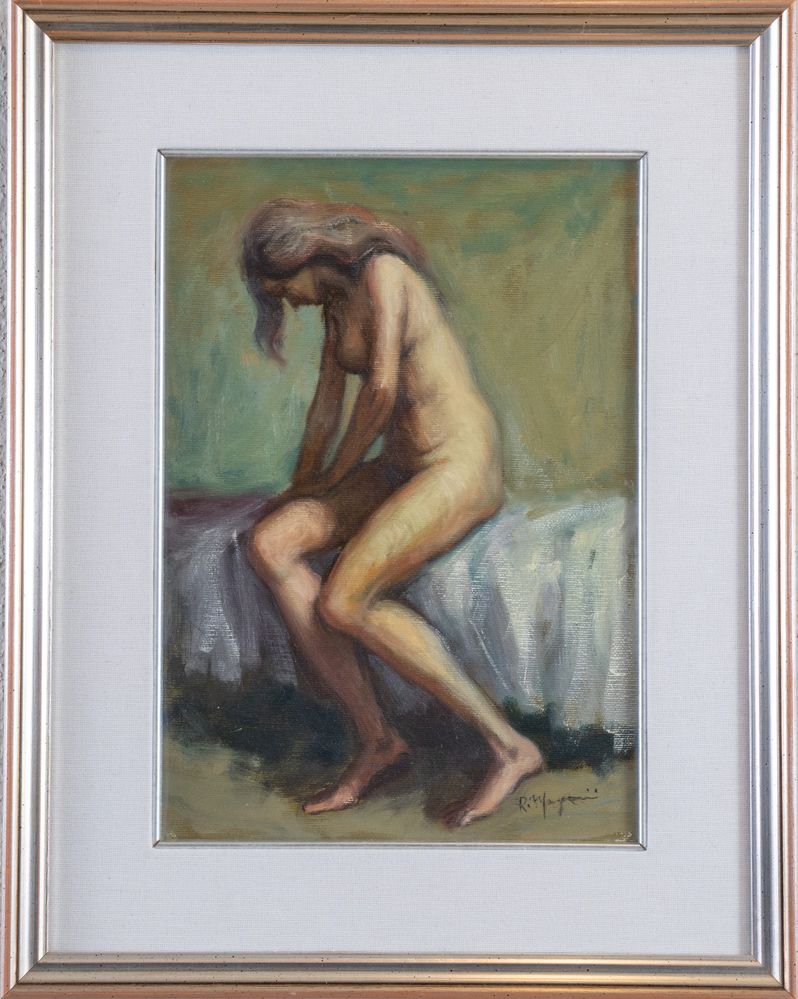 RENZO MAGNANINI (Gonzaga 1920 – Bentivoglio 2006) "Nudo di donna". Olio su tela. Cm 34x24. Opera firmata in basso a destra R. Magnanini.