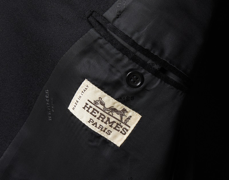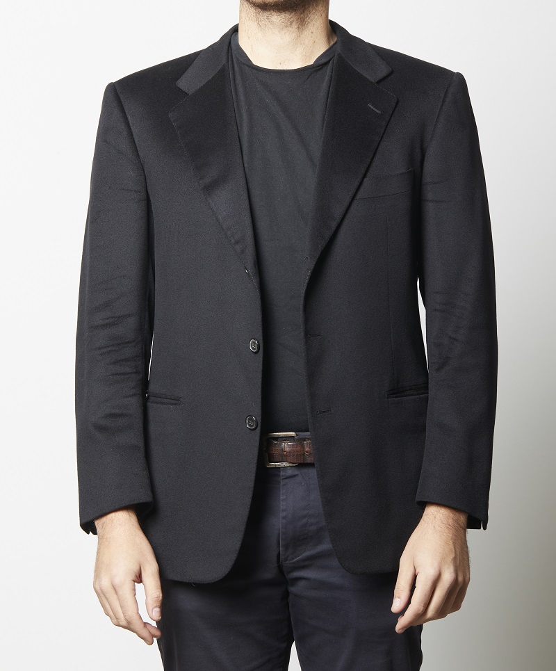 Classica giacca Hermès, tre bottoni, in pregiato cachemire nero, interno foderato in nuance, etichetta all'intermo, capo classico ed intramontabile, un vero e proprio wardrobe essential.Il modello è alto 1.90 e indossa una taglia 52. Le dimensioni della giacca sono circa spalle spalle 47 cm, vita 52 cm , lunghezza del retro dal colletto 72 cm.