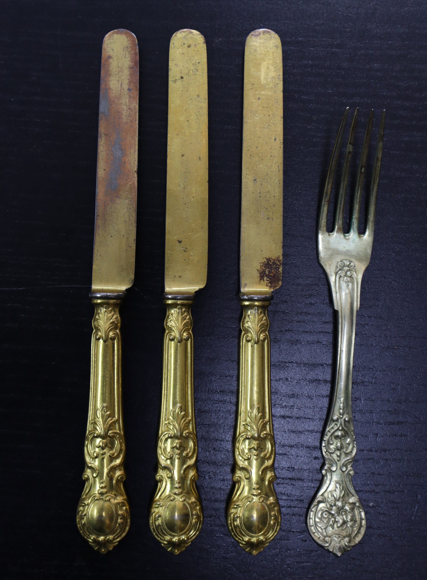 French Christofle - ANTICO SERVIZIO DI POSATE DA 12, PLACCATO ORO, INIZI '900