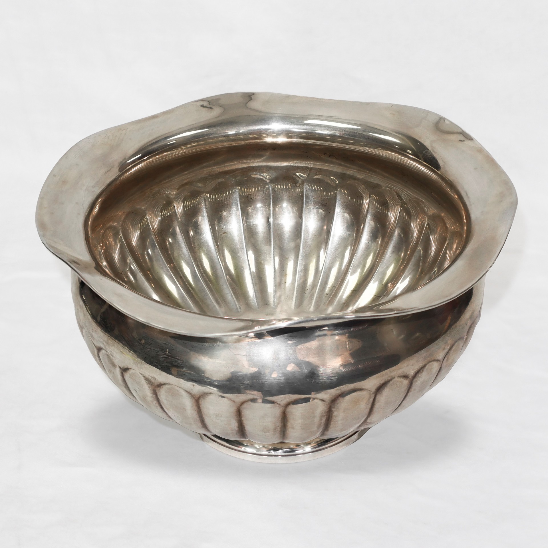 Lotto 20 | Centrotavola a coppa in argento, con decorazioni sbalzate a lobi.