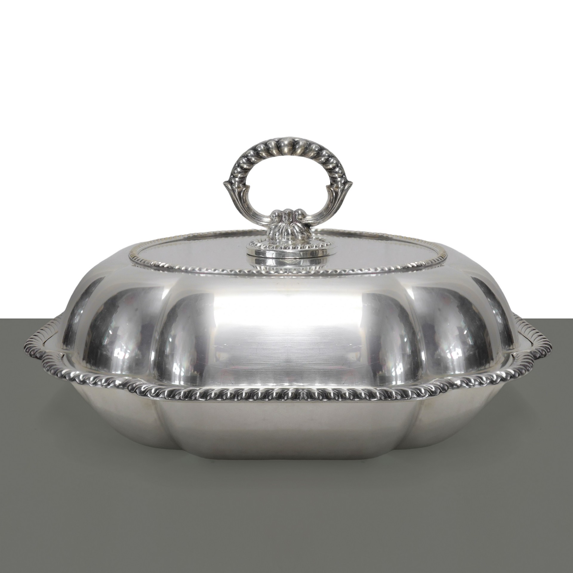 Portavivande in argento con coperchio, Fine 18° century g 1018 / h cm 4 / cm 25 x 25