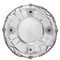 Vassoio in argento rotondo, bordo smerlato, corniola applicata, al centro di bulinature barocche gr