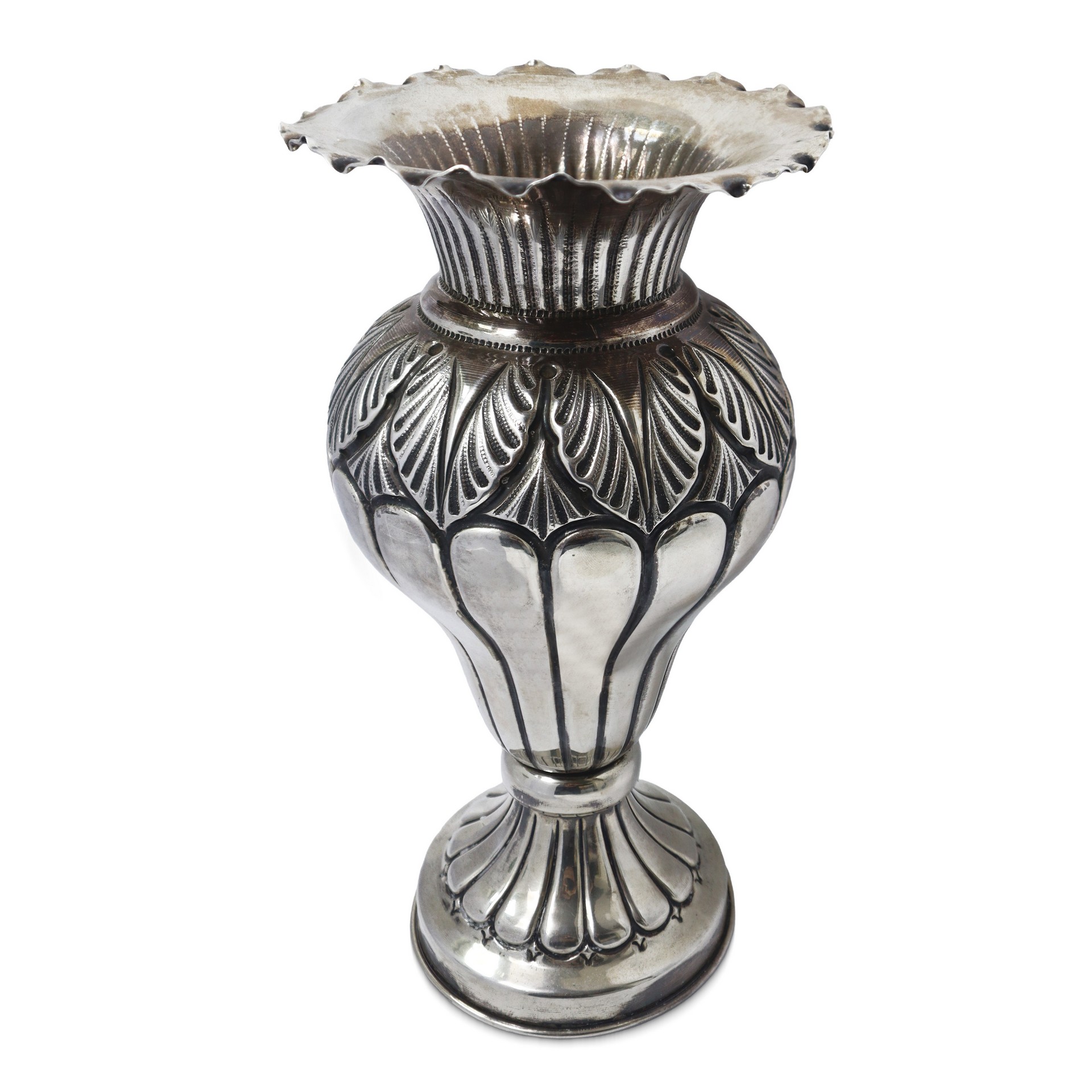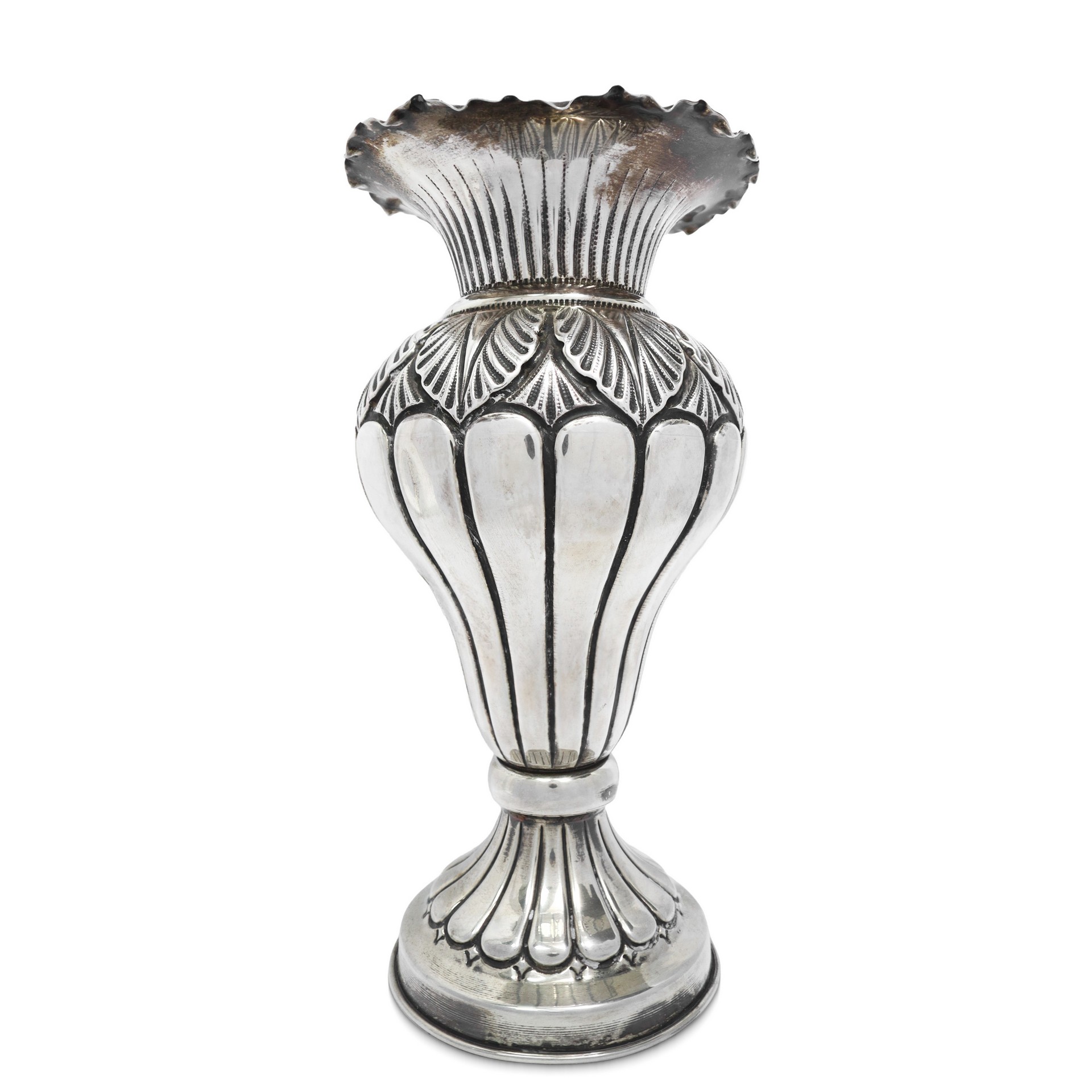 Vaso in argento con decori di foglie Gr 386 H cm 25x13