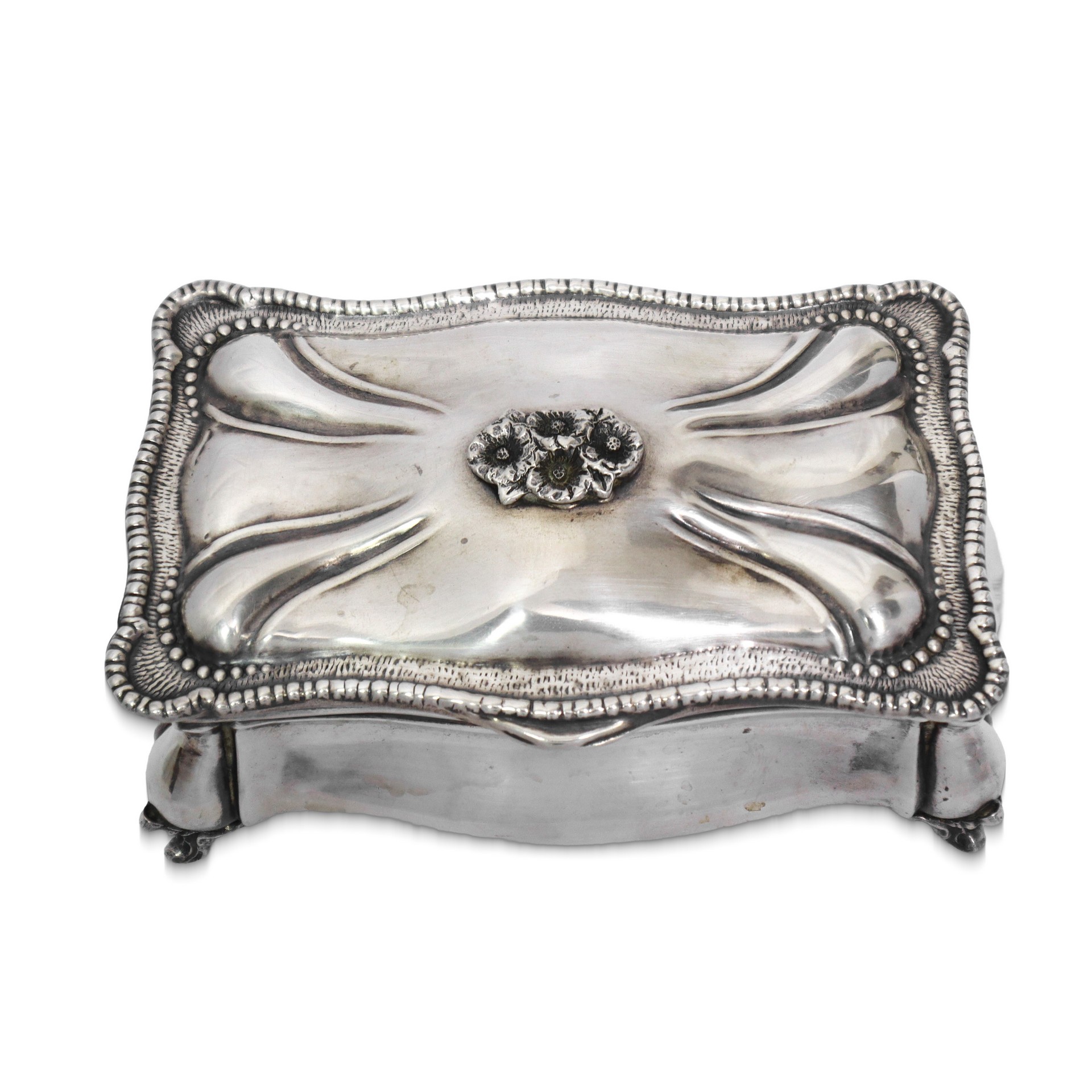 Portagioie in argento, coperchio lavorato a mano gr 212