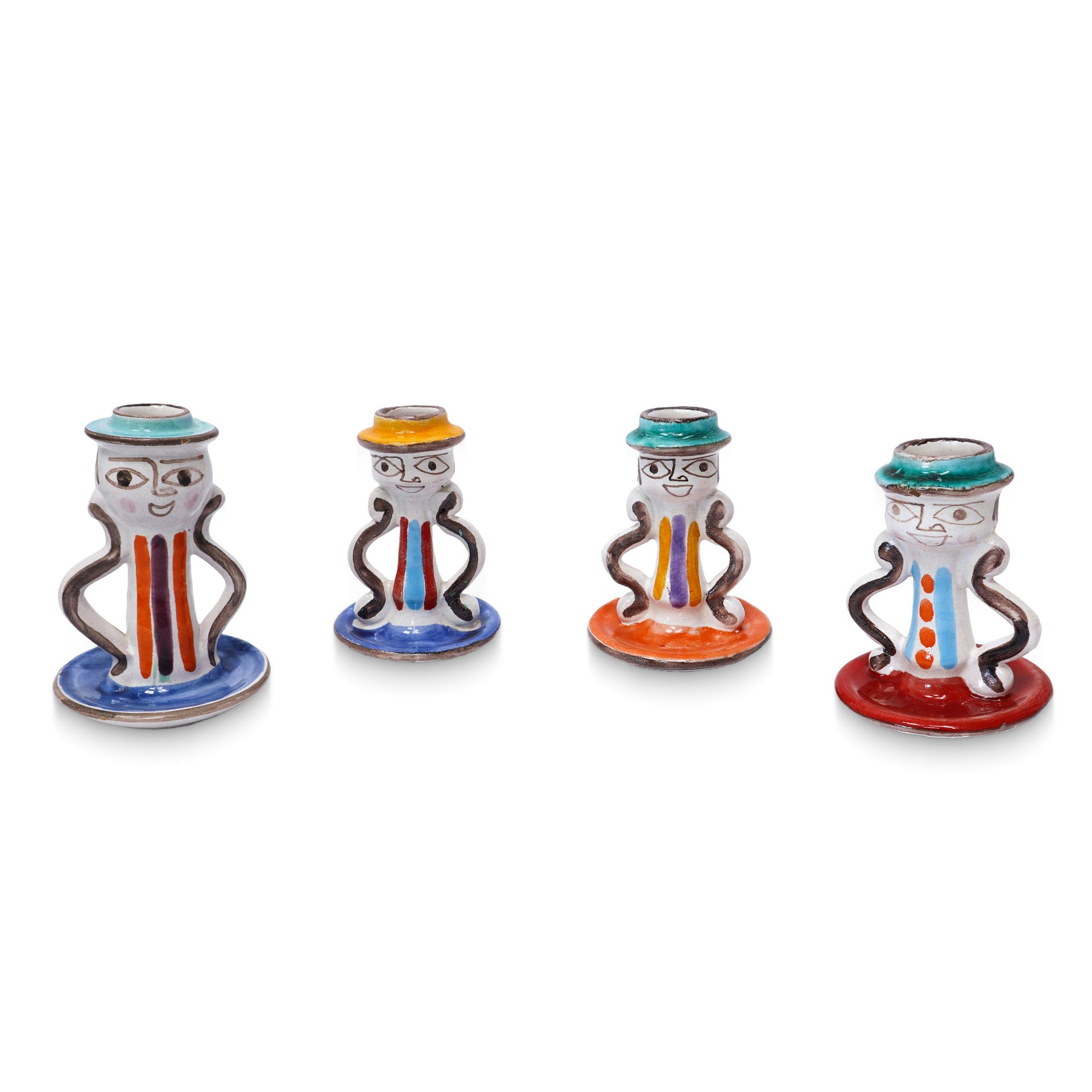 De Simone - Quattro portacandele monoforo in porcellana policroma, dipinti a mano con volto., 1970