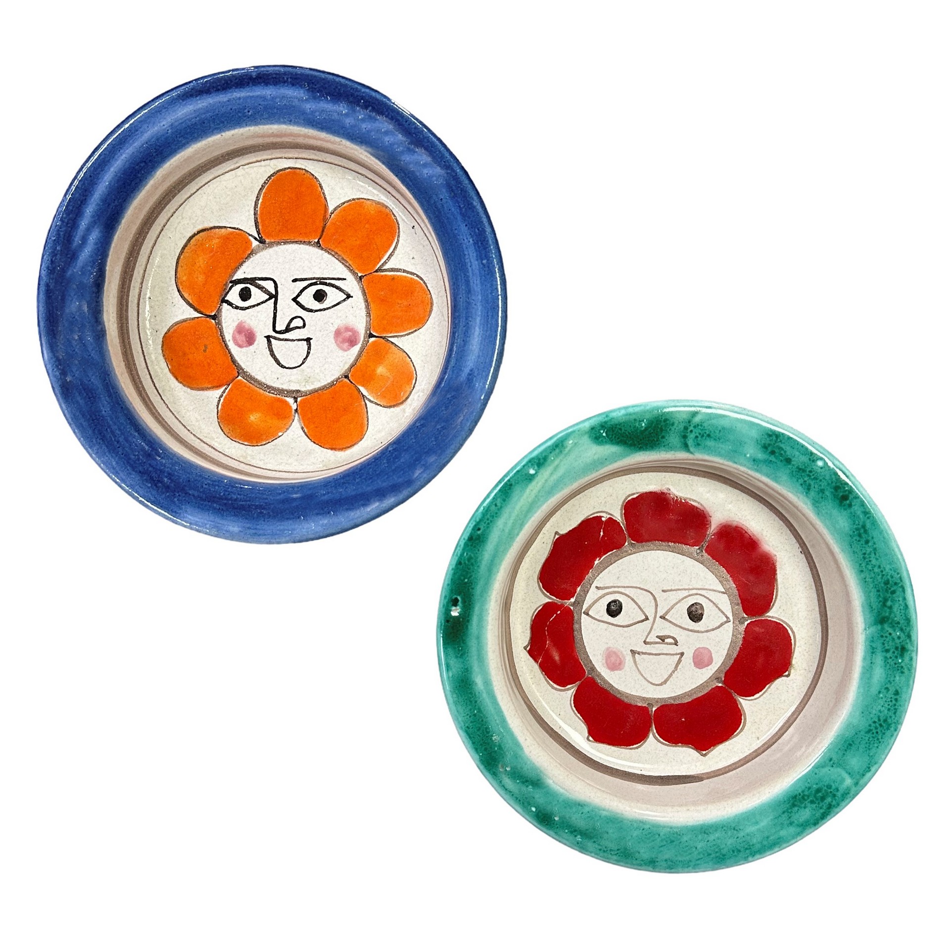 De Simone - Coppia di ciotoline in ceramica policrome dipinte a mano con sole con corolla, 1960/1970