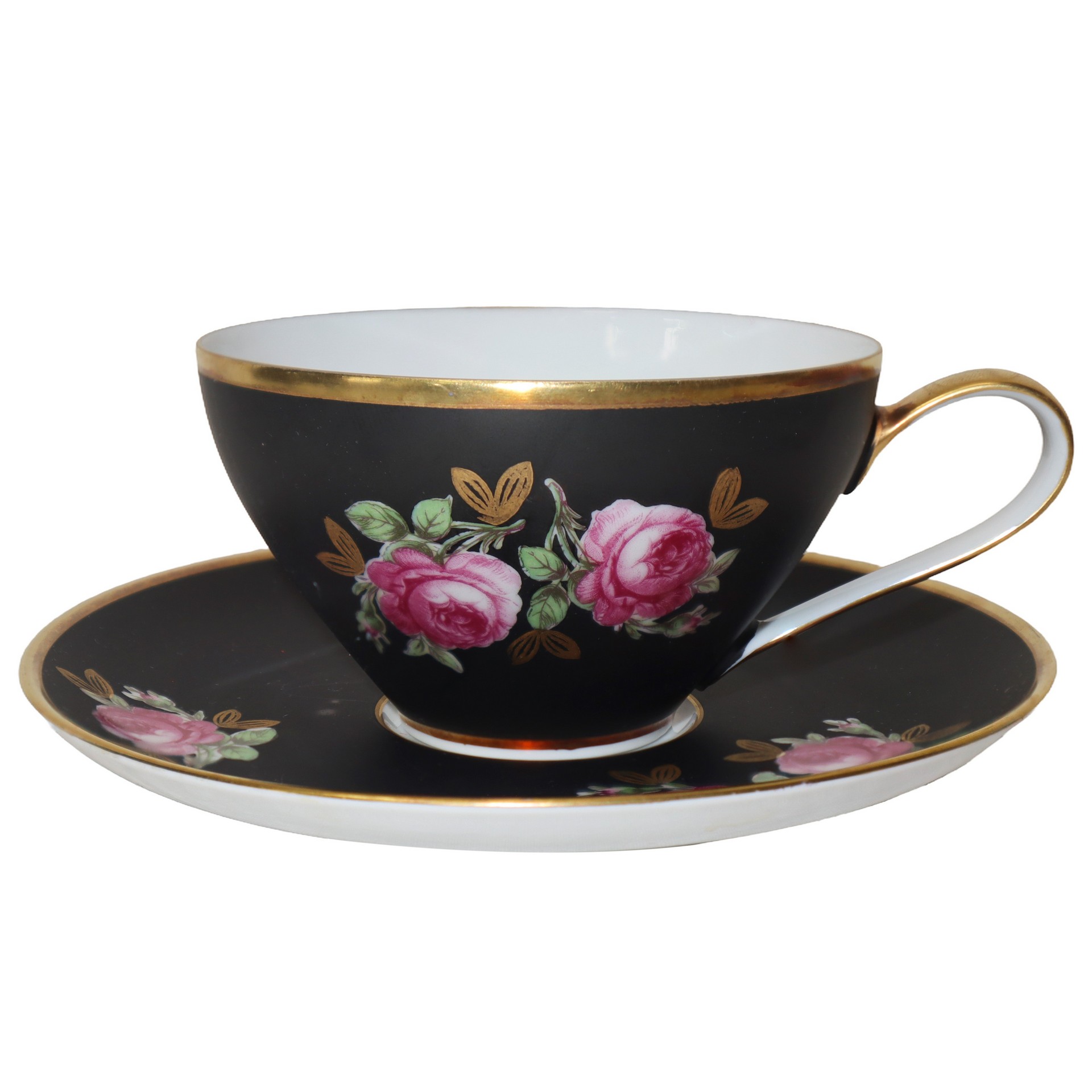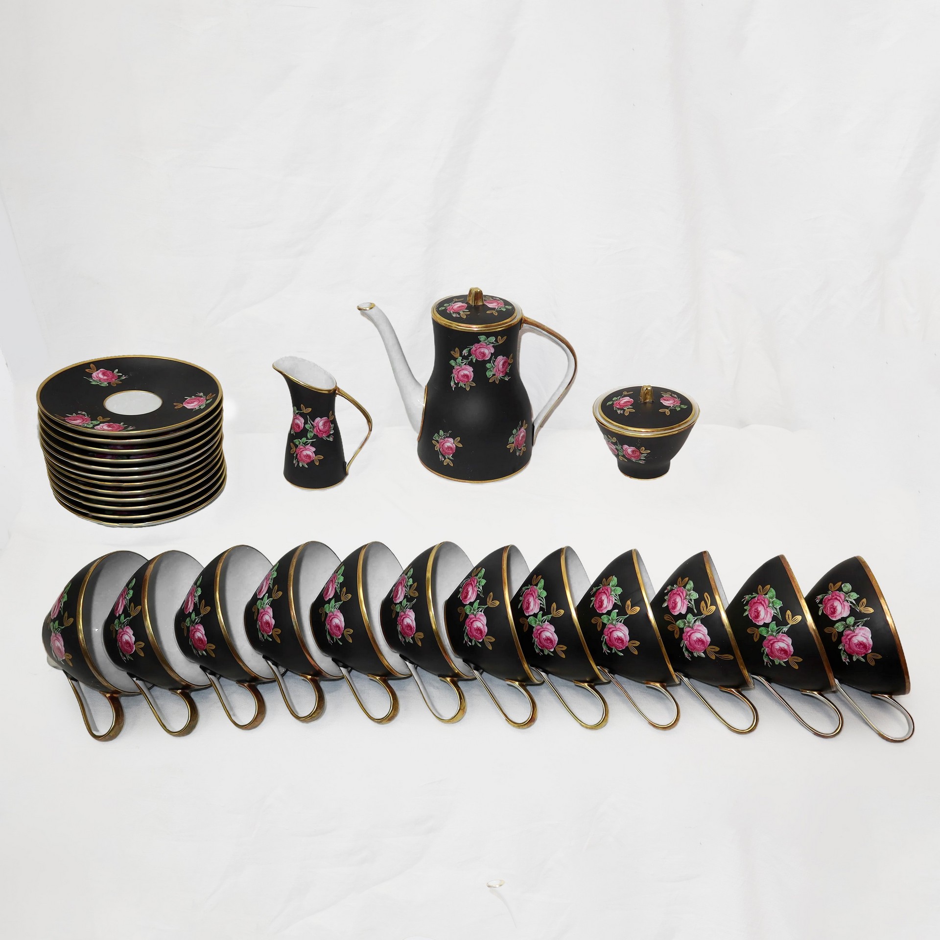 Sevres- Vincennes - Servizio da te in porcellana e decorazioni floreali con perfilo in oro, 1950s