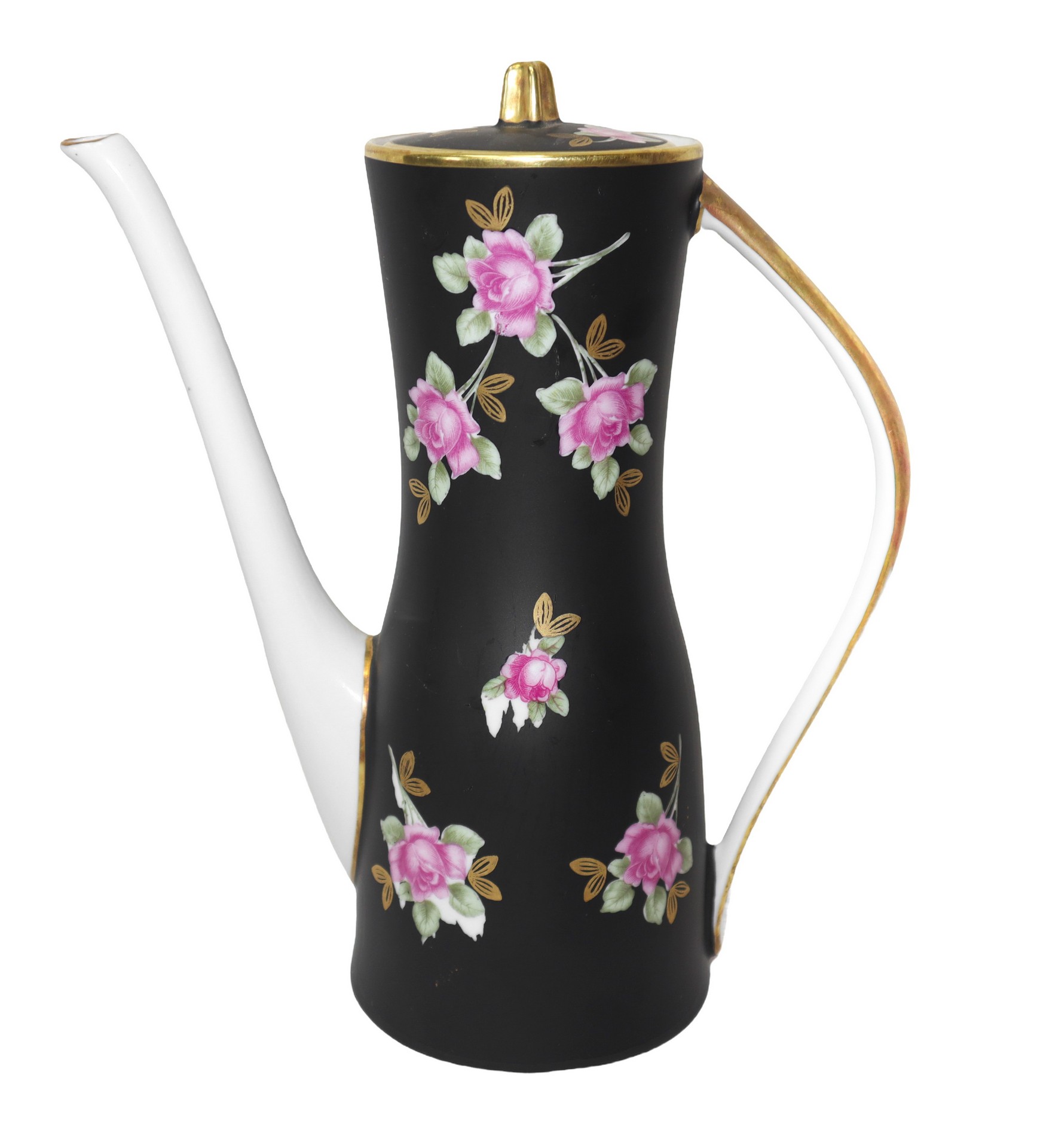 Sevres- Vincennes - Servizio da caffè in porcellana e decorazioni floreali con perfilo in oro, 1950s