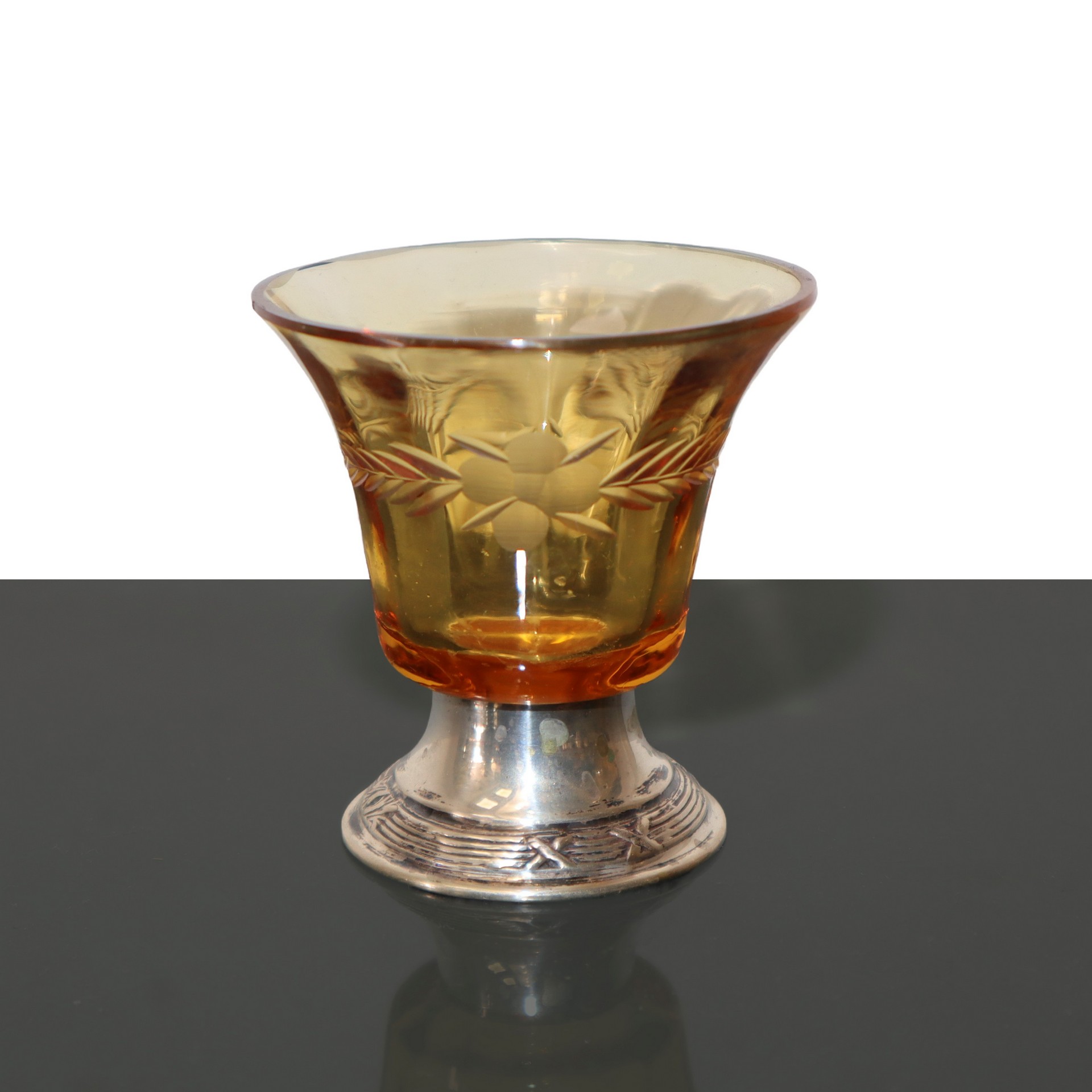 Servizio da liquore in vetro nei toni del pagliesco ed argento 800