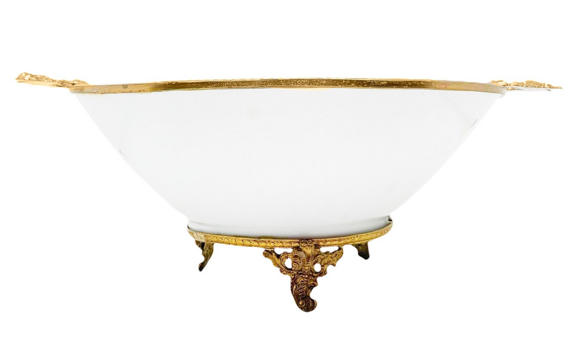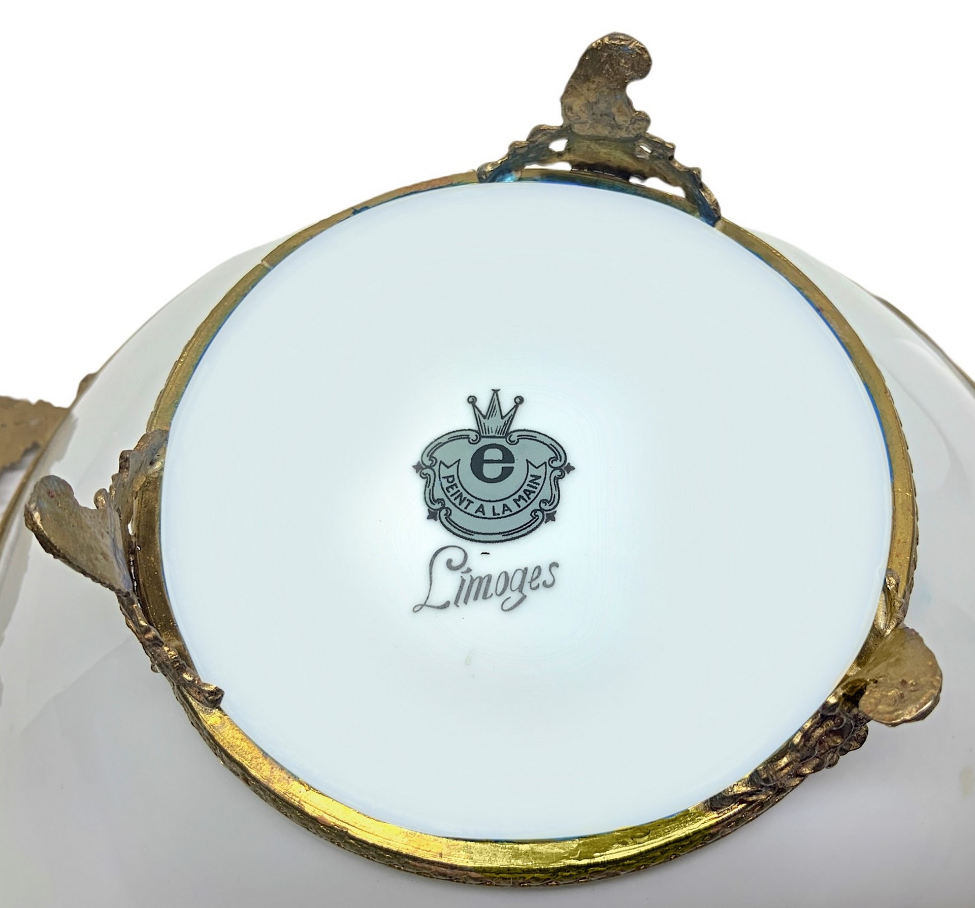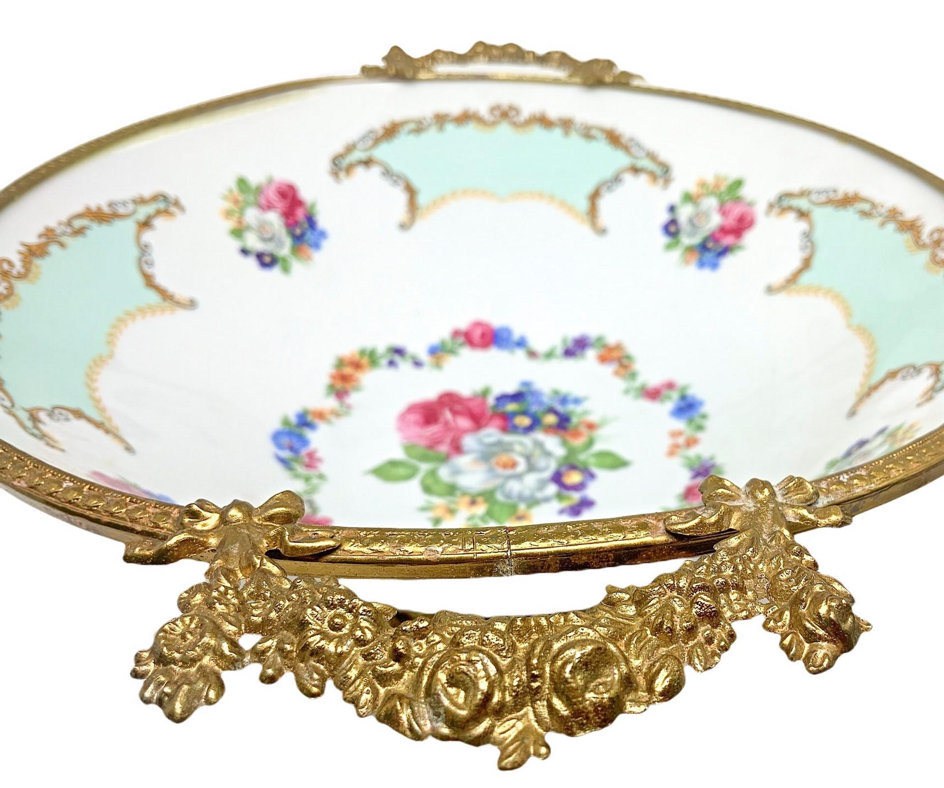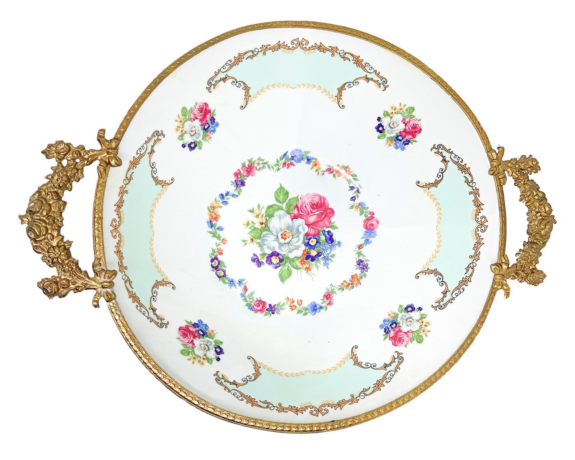 Centrotavola in porcellana decorato a mano H cm 9,8 Cm 30x23 con decorazioni floreali con manici r