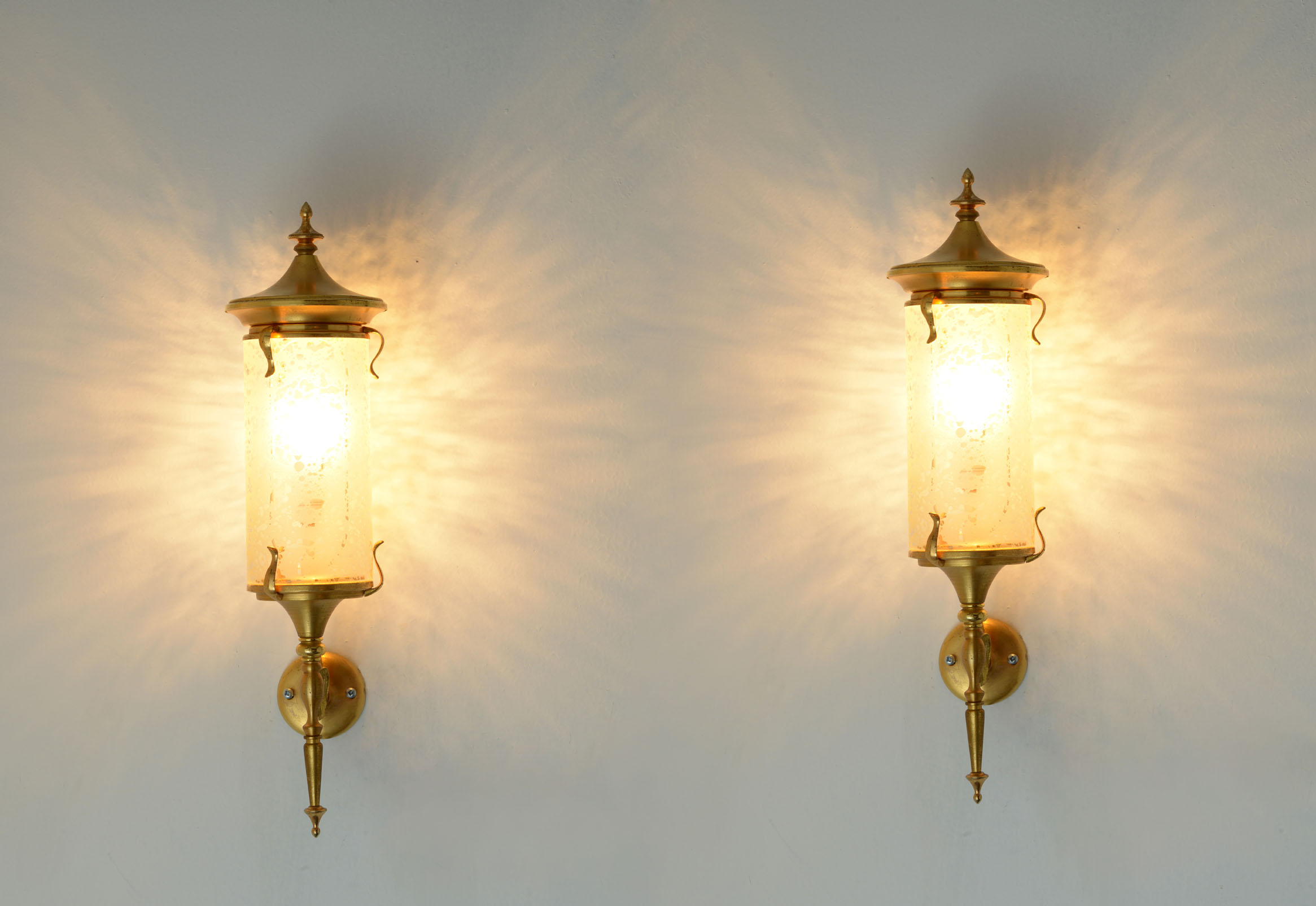 A pair of wall sconces Lumi, appliques, Italy 1950'sA pair of brass and...