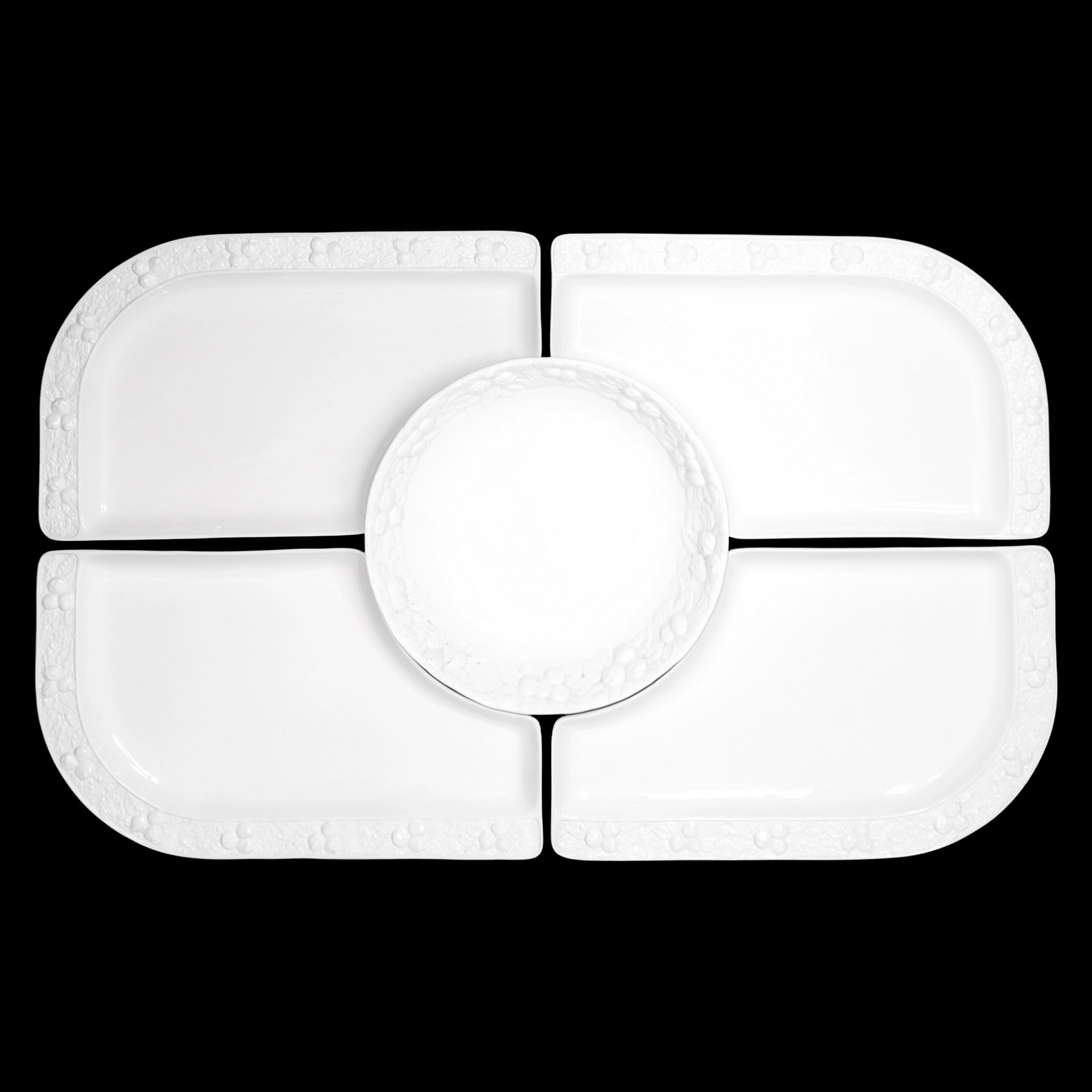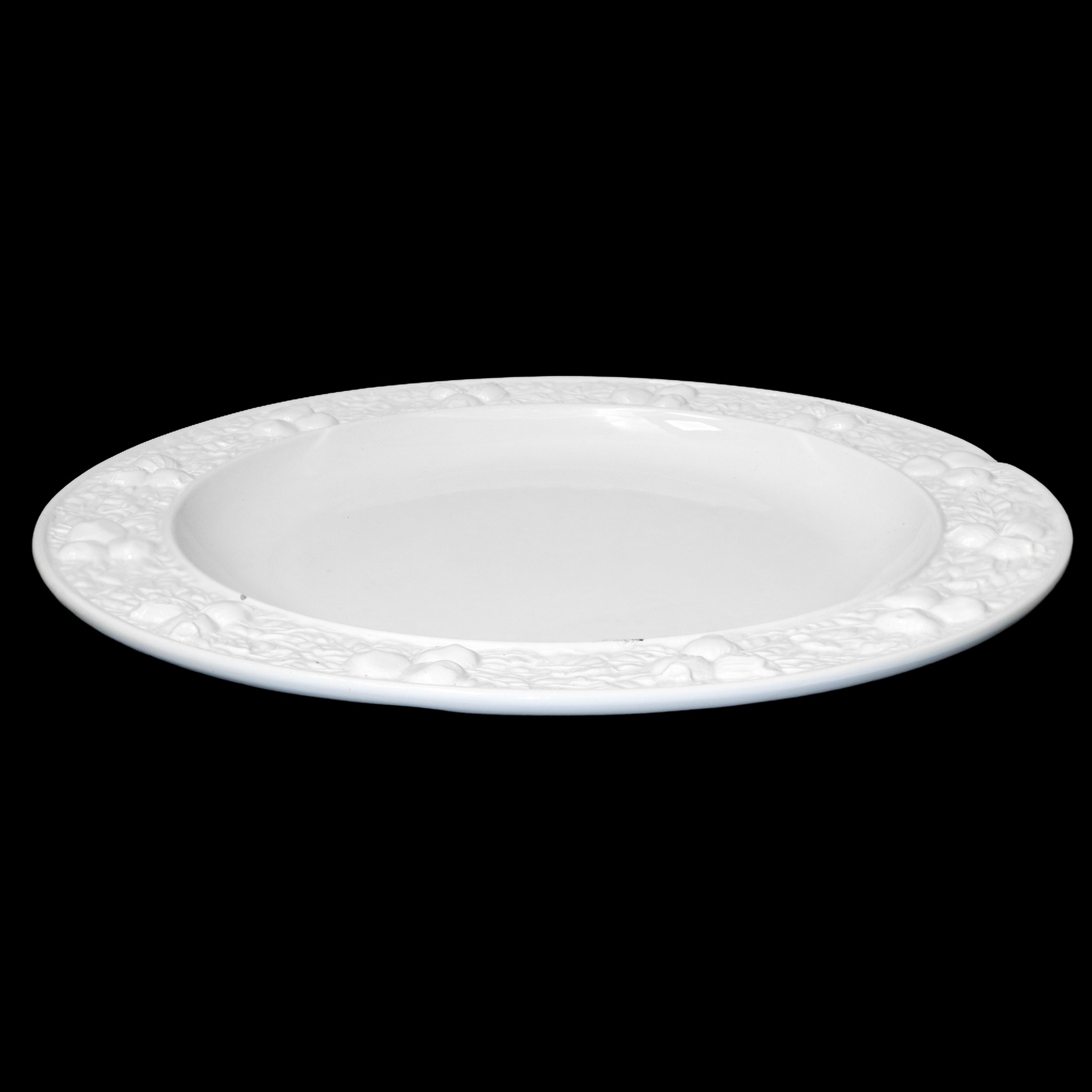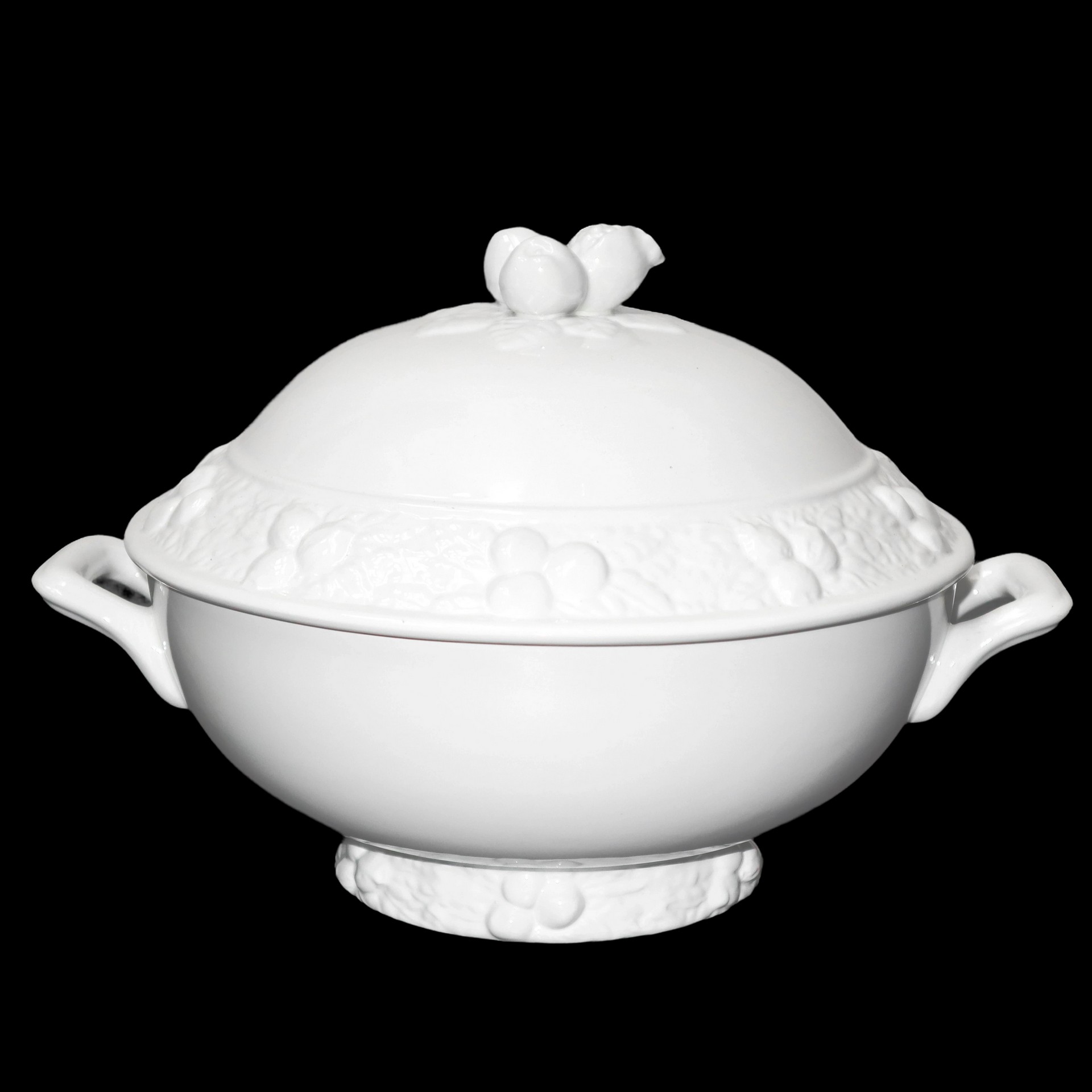 Centrotavola in ceramica smaltata bianca composto da N. 5 ceramiche smaltate, zuppiera e N 3 piatti