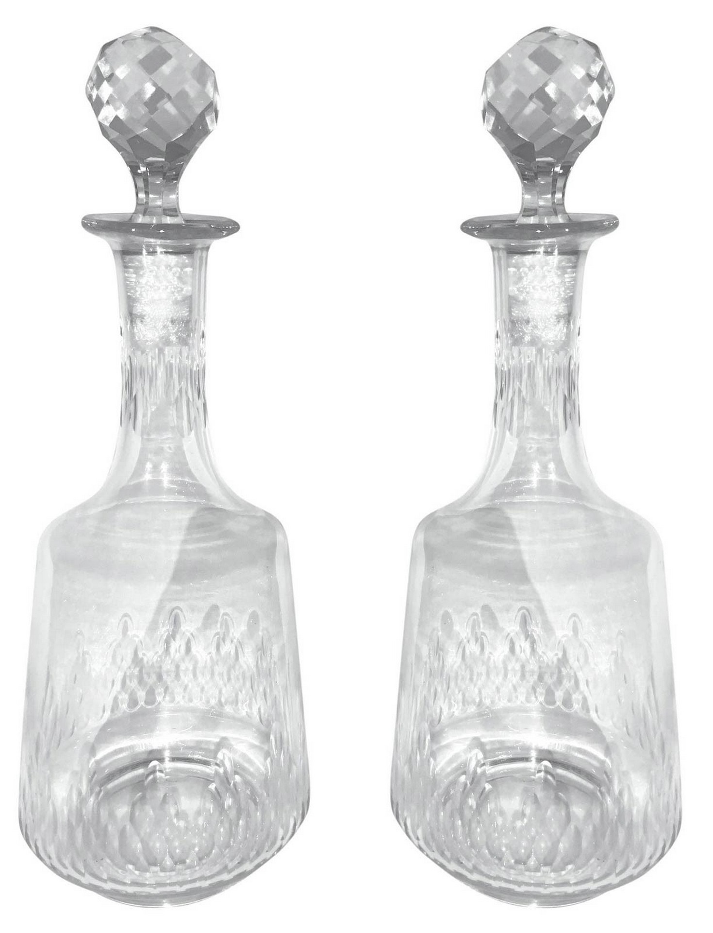 Coppia bottiglie in cristallo, 20° century h cm 28, h cm 30