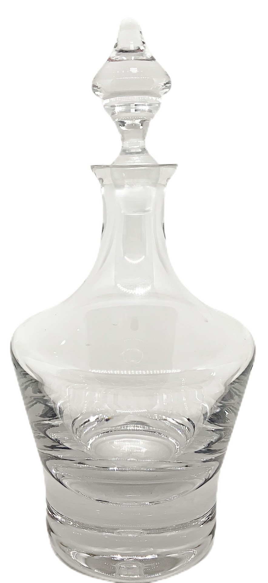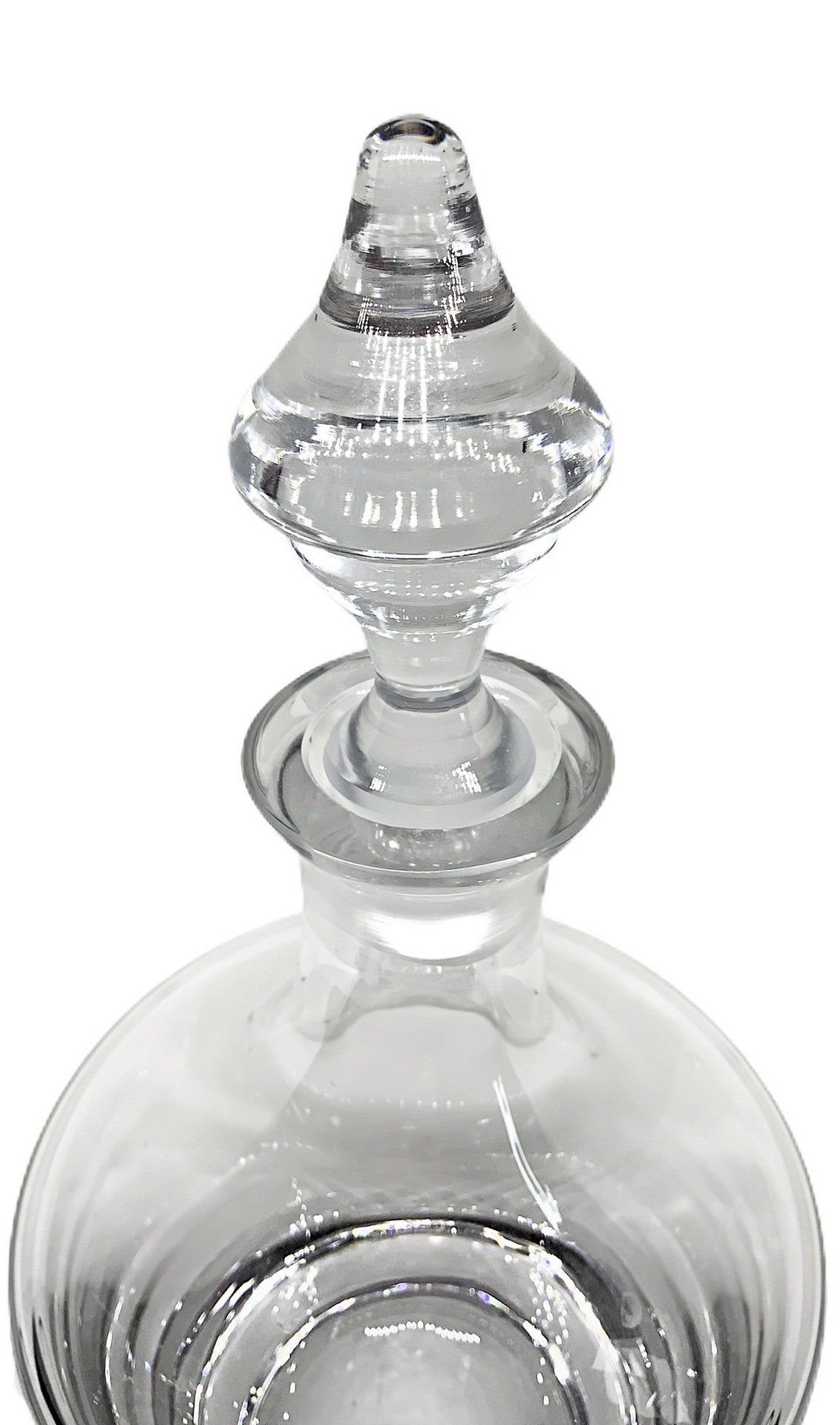 Bottiglia in cristallo pesante, con tappo. H cm 32