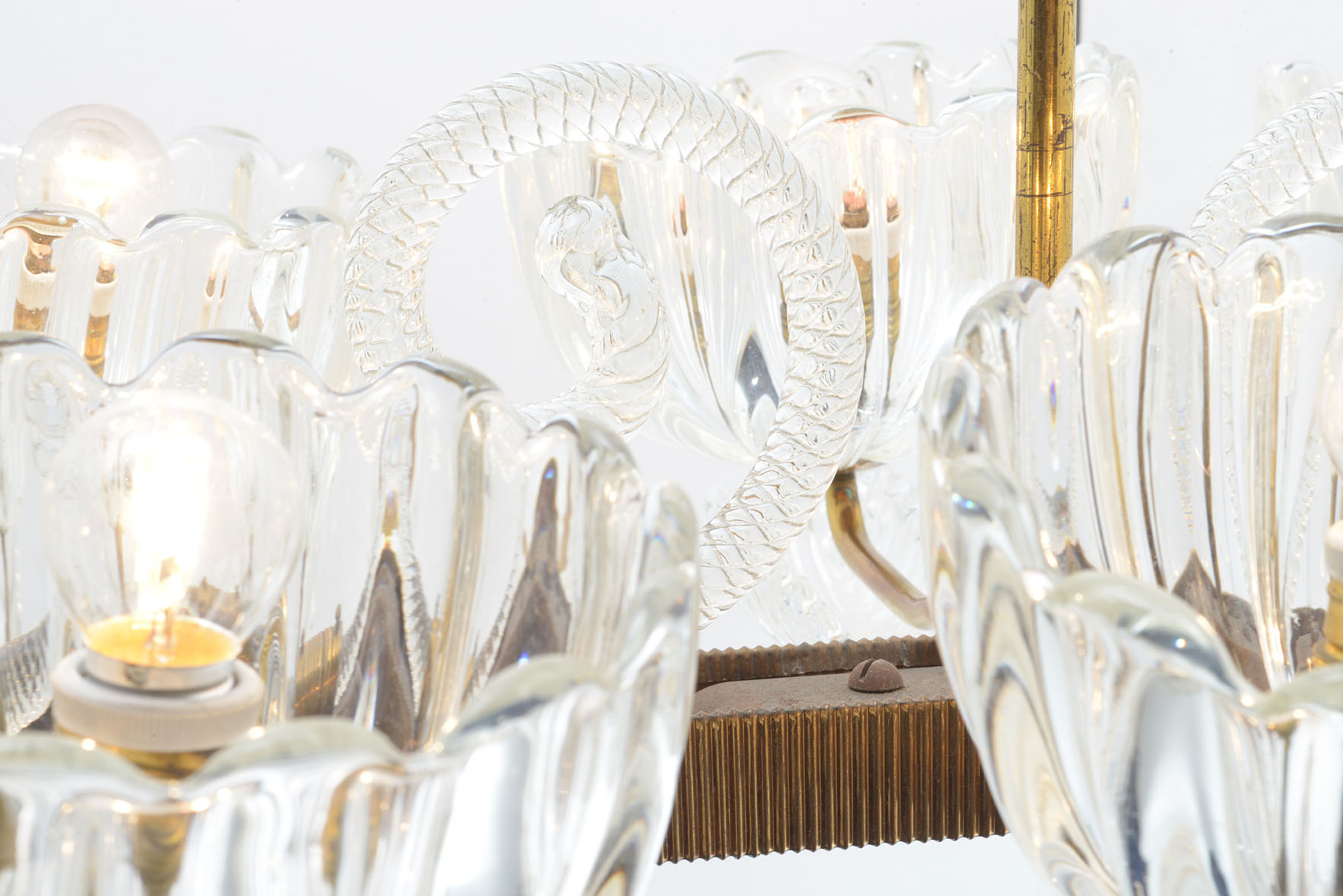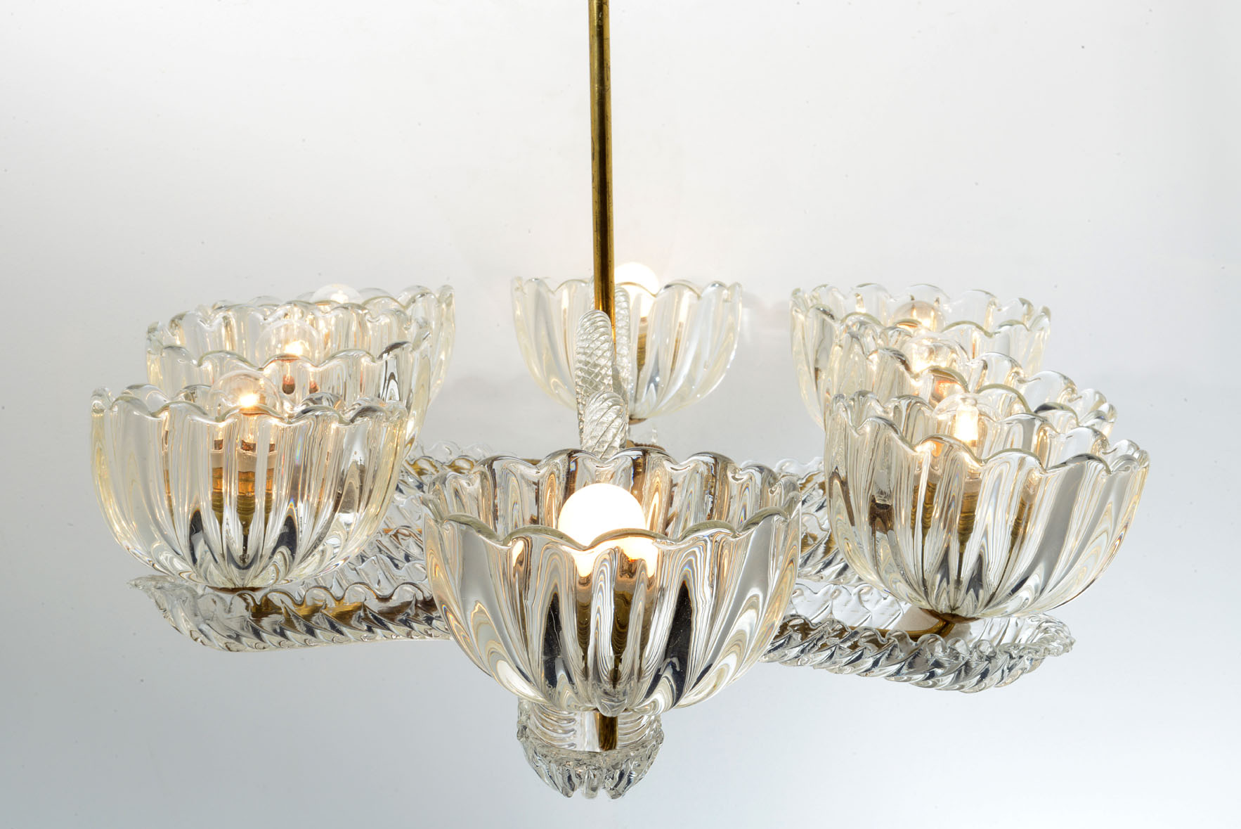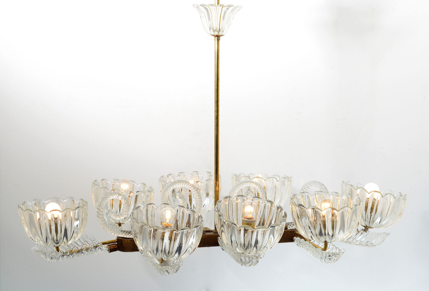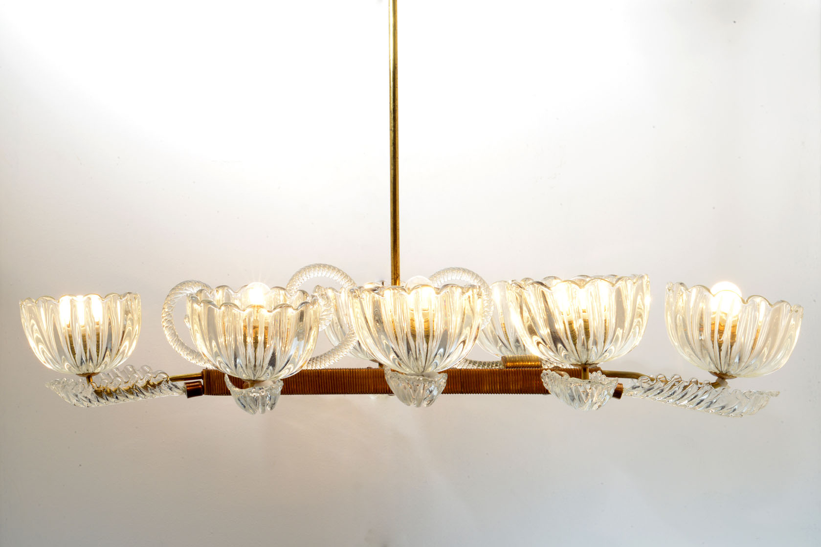 A brass and glass suspension lamp, Italy Art Deco period 1950's