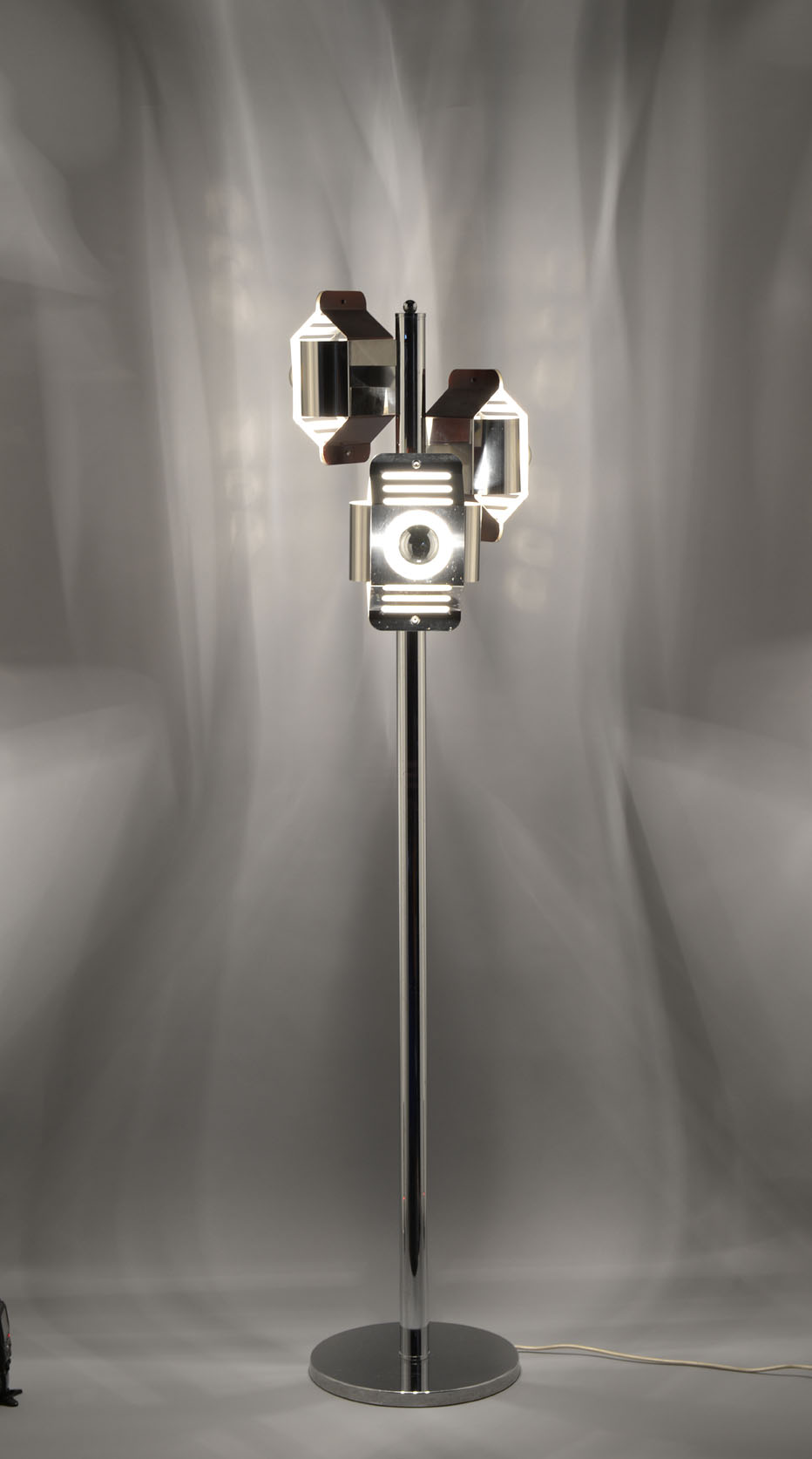 A floor lamp A three-light lamp, Italy 1960'sA chromed metal floor...