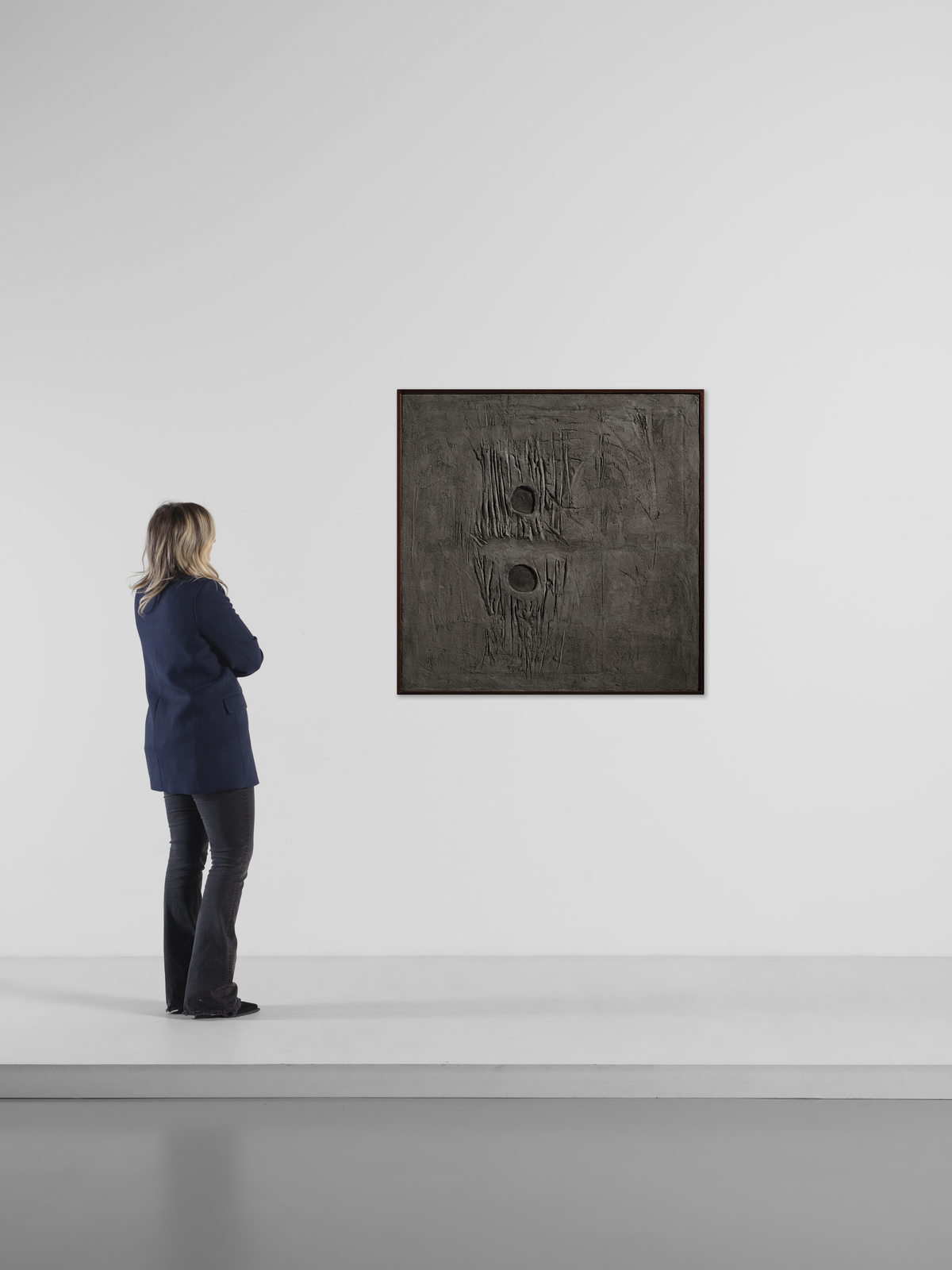 SCHIFANO MARIO (1934 - 1998) PITTURA. 1959. Cemento su tela. Cm 120,00 x 120,00. sul retro: firma, data e titolo
