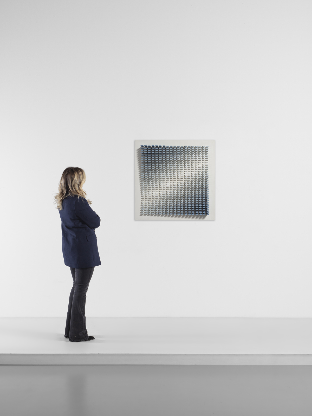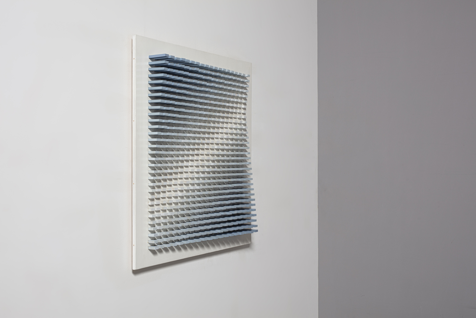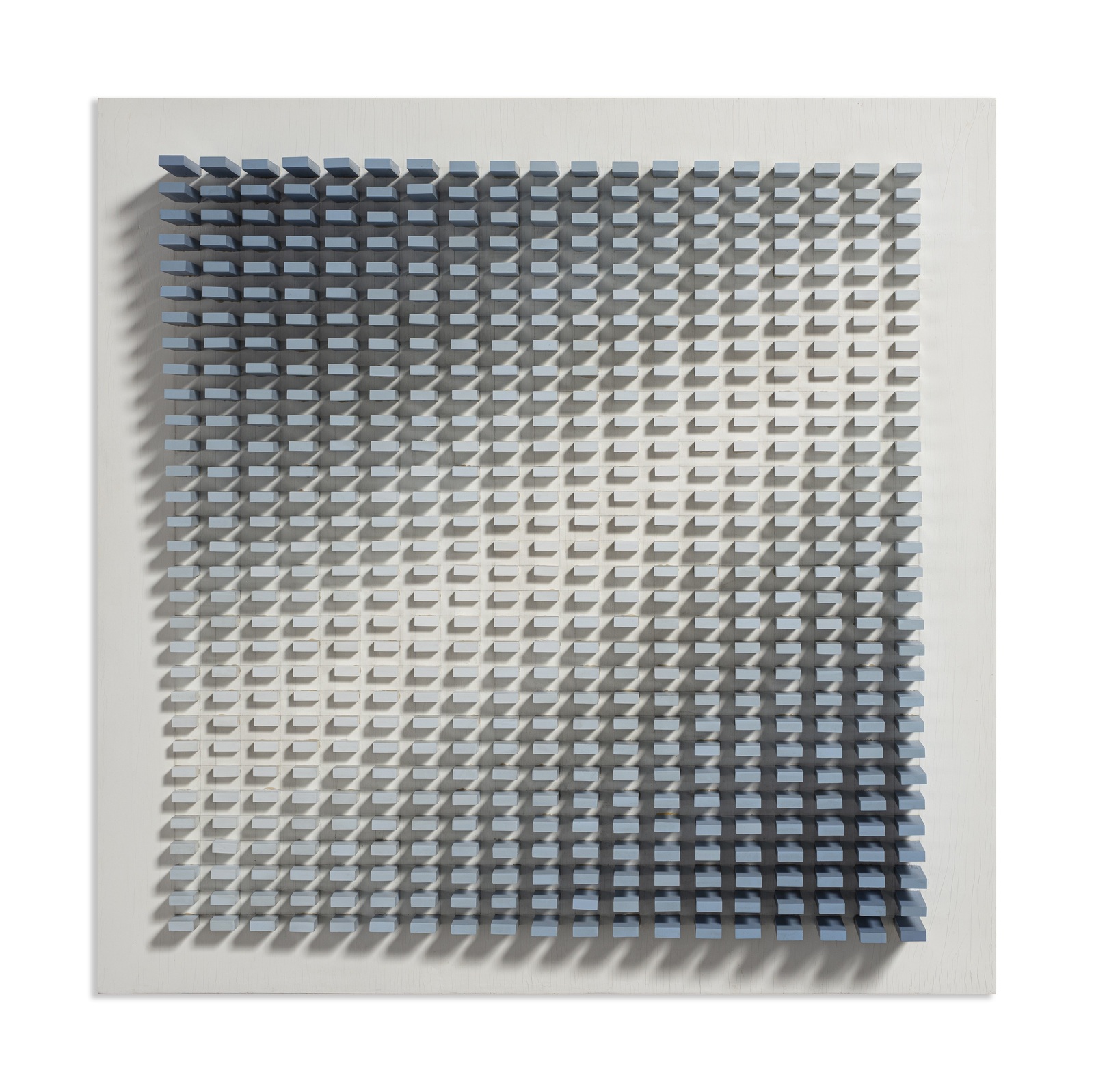 DADAMAINO (1935 - 2004) RILIEVO (CROMORILIEVO), 1973-74. tasselli di legno verniciato su tavola. Cm 90,00 x 90,00 x 4,50. sul retro: firma, data e titolo