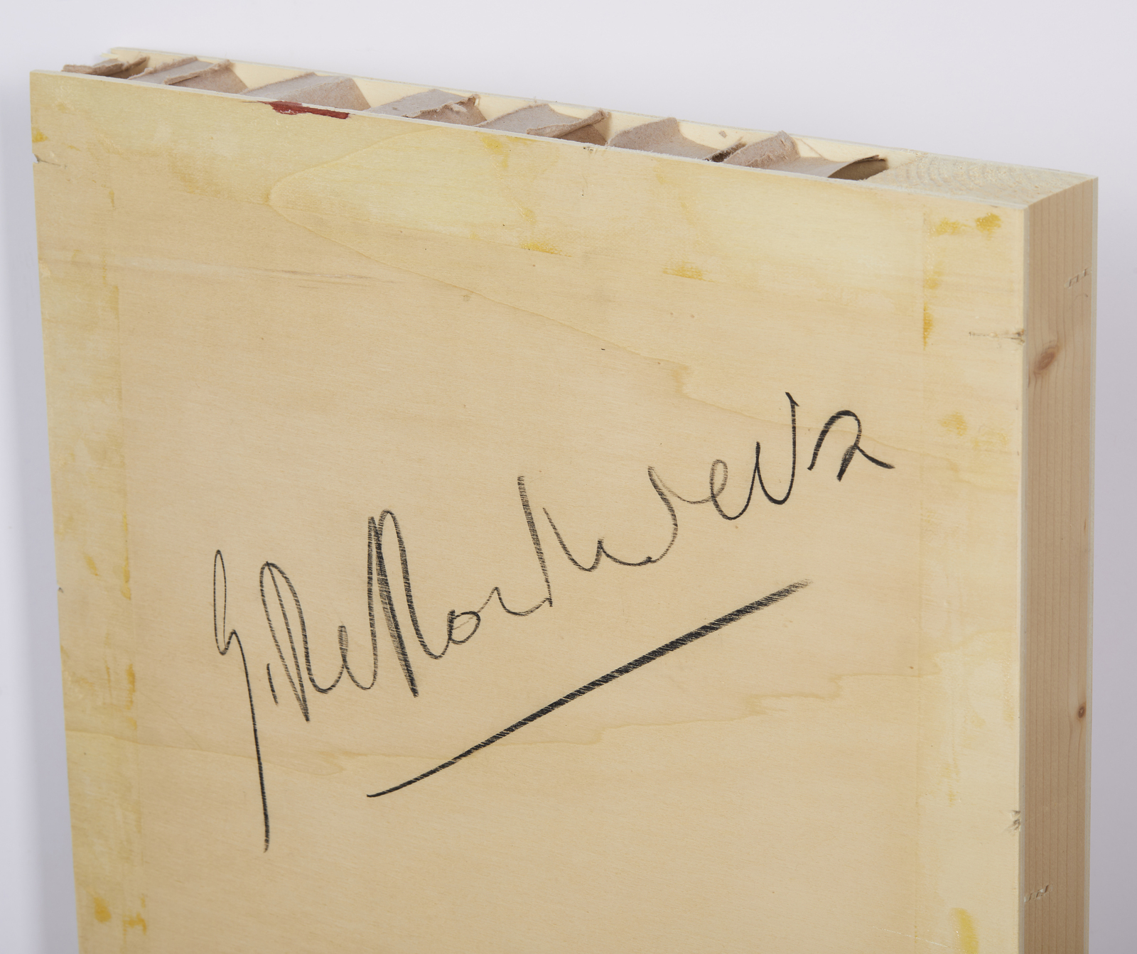 L'opera è accompagnata da autentica dell'artista su fotografia e da certificato del Comitato scientifico archiviazione opere Gino De Dominicis, Foligno
