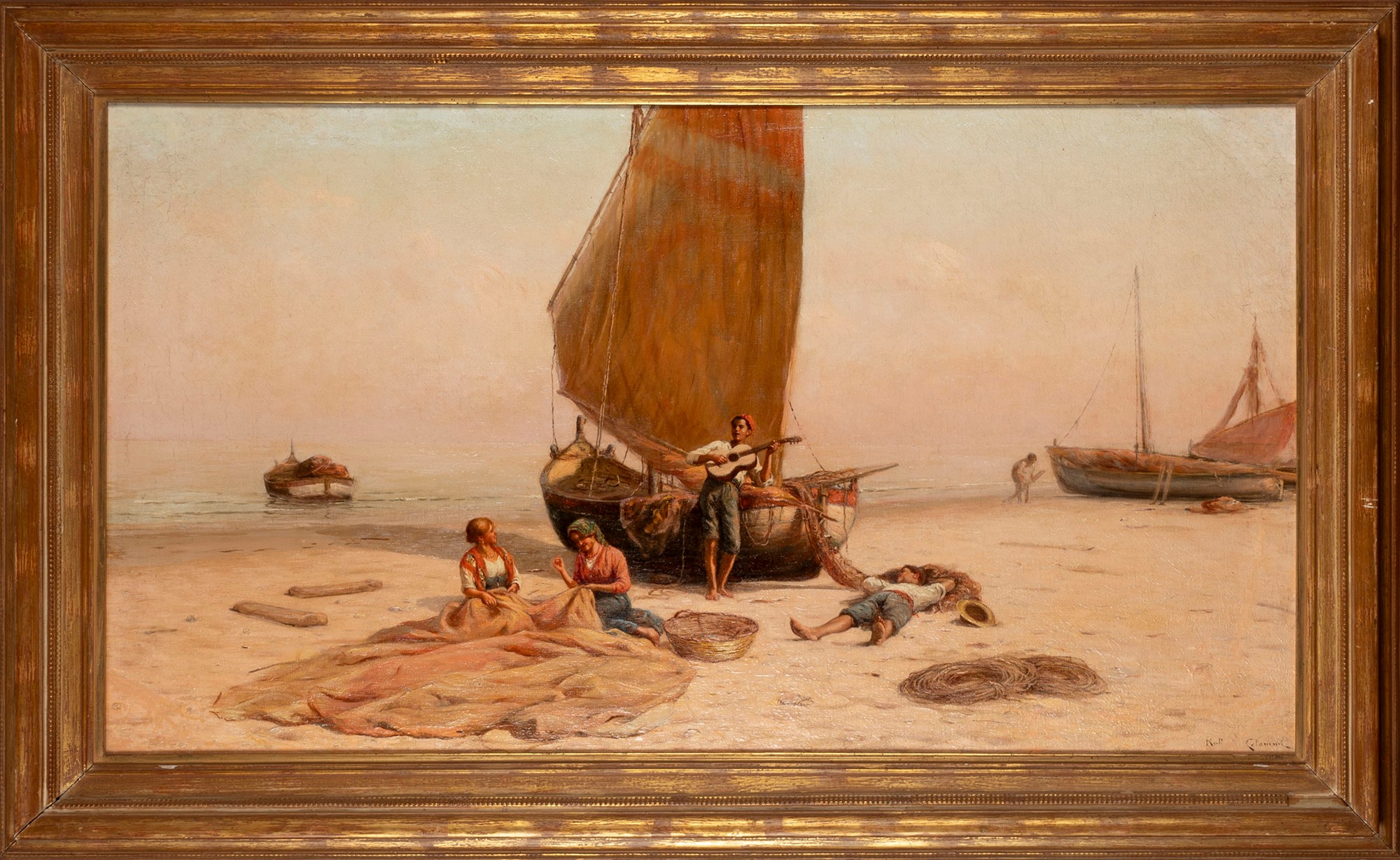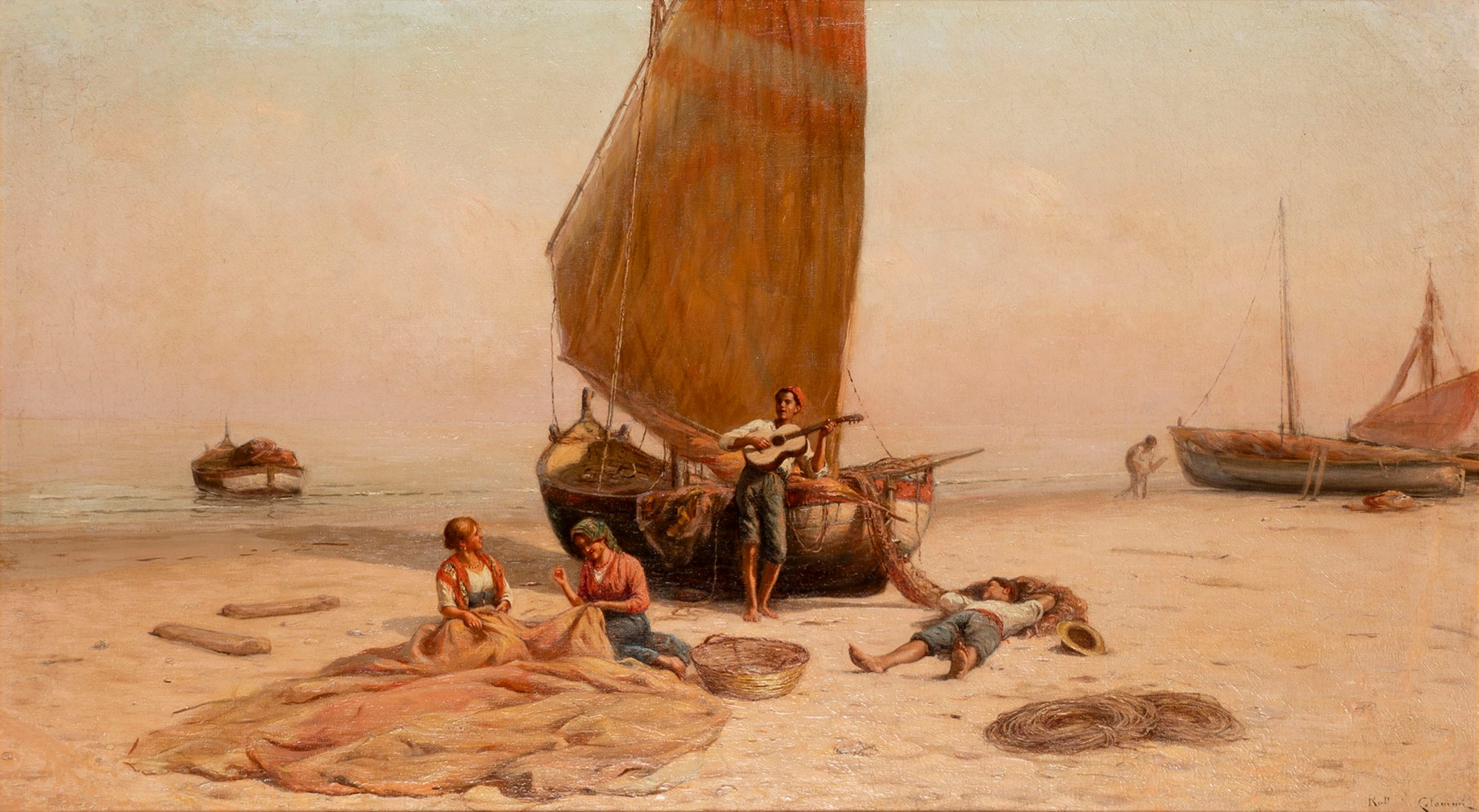 Raffaello Celommi (Firenze 1881-Roseto degli Abruzzi 1957) - La riparazione delle reti da pesca