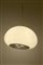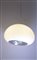 A glass and aluminium variant of the Splügen Bräu lamp, producing direct and diffused light in the various combinations. Three bulbs within the opal white glass diffuser and a down-turned silver-plated topped surface bulb, are set within the corrugated aluminium calotte. Its name comes from the back and white effect created when the glass part is turned on with diffused light and the lower part is switched off.