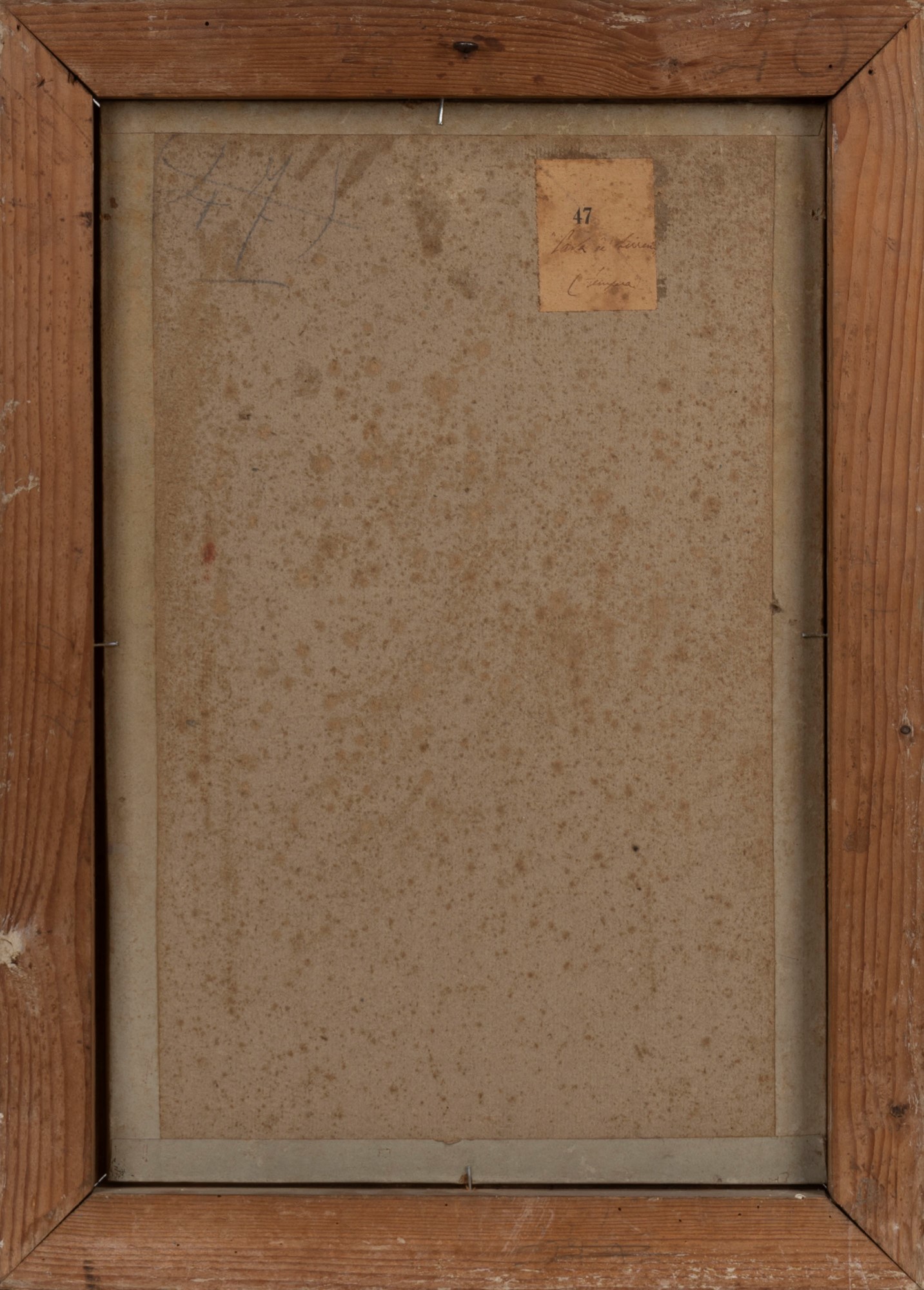 Sul retro, antico cartellino manoscritto con titolo, tecnica e numero di riferimento: 47 / "Cava de' Tirreni" / (tempera); numero di riferimento (47).