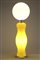 Yellow blown glass lamp surmounted by a large white glass sphere. The two parts can be turned on separately by using the foot switch.