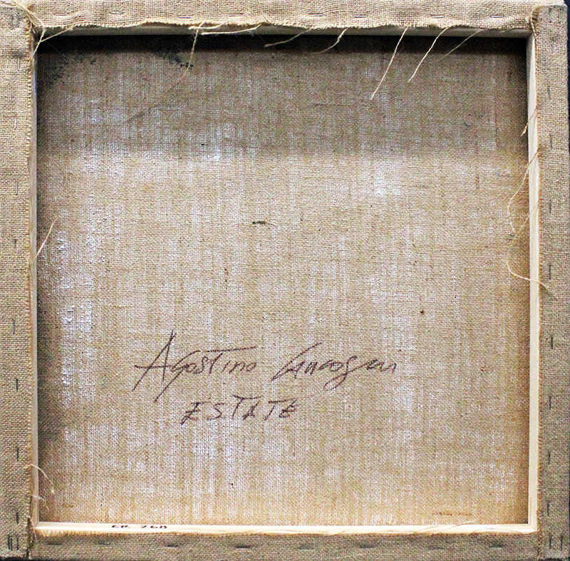 AGOSTINO CANCOGNI, "Estate", anni 2000, olio su tela di juta, 50x50, Al verso: firma e titolo. Opera senza cornice.