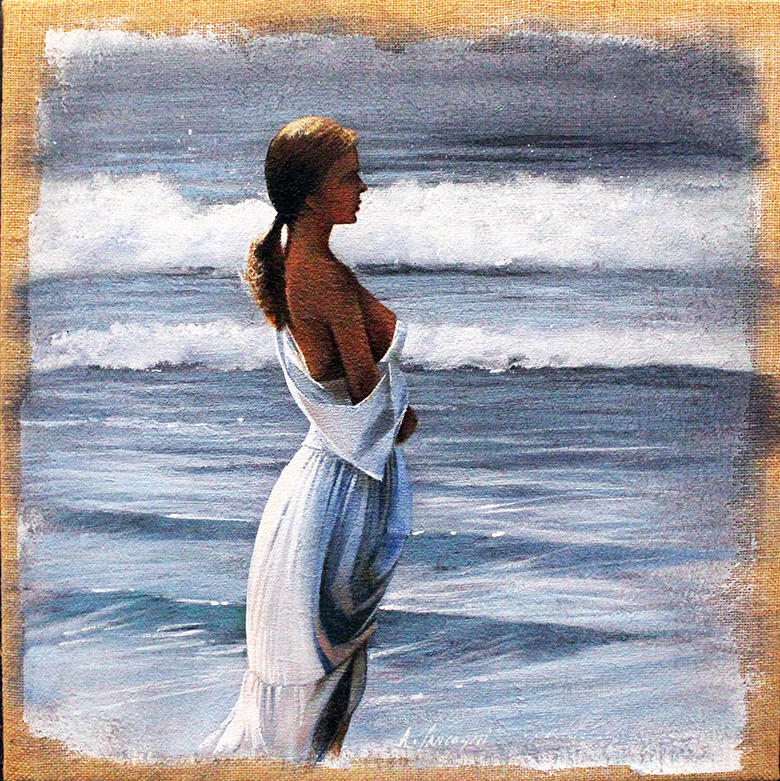 AGOSTINO CANCOGNI, "Estate", anni 2000, olio su tela di juta, 50x50, Al verso: firma e titolo