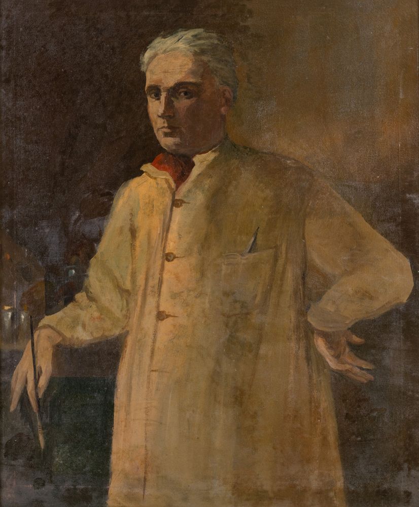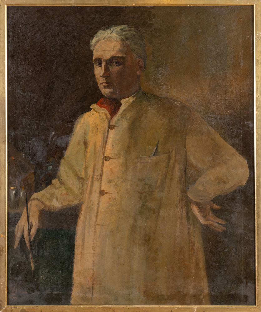 ANTONIO FRABBONI "Autoritratto". Olio su tela. Cm 98x82. Al retro reca iscrizione Autoritratto del pittore Antonio Frabboni.