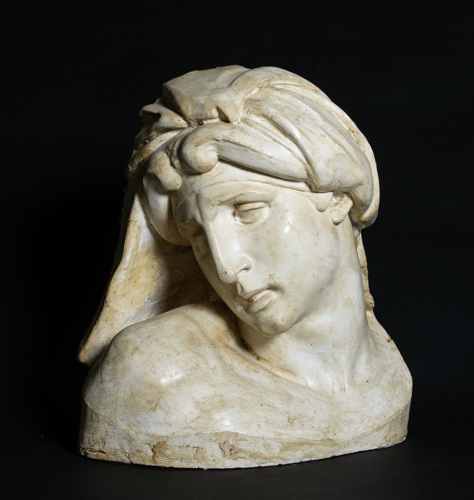 Manifattura italiana del XIX secolo - XX secolo. Calco in gesso raffigurante testa dell'Aurora di Michelangelo. Cm 41,5x35x31.